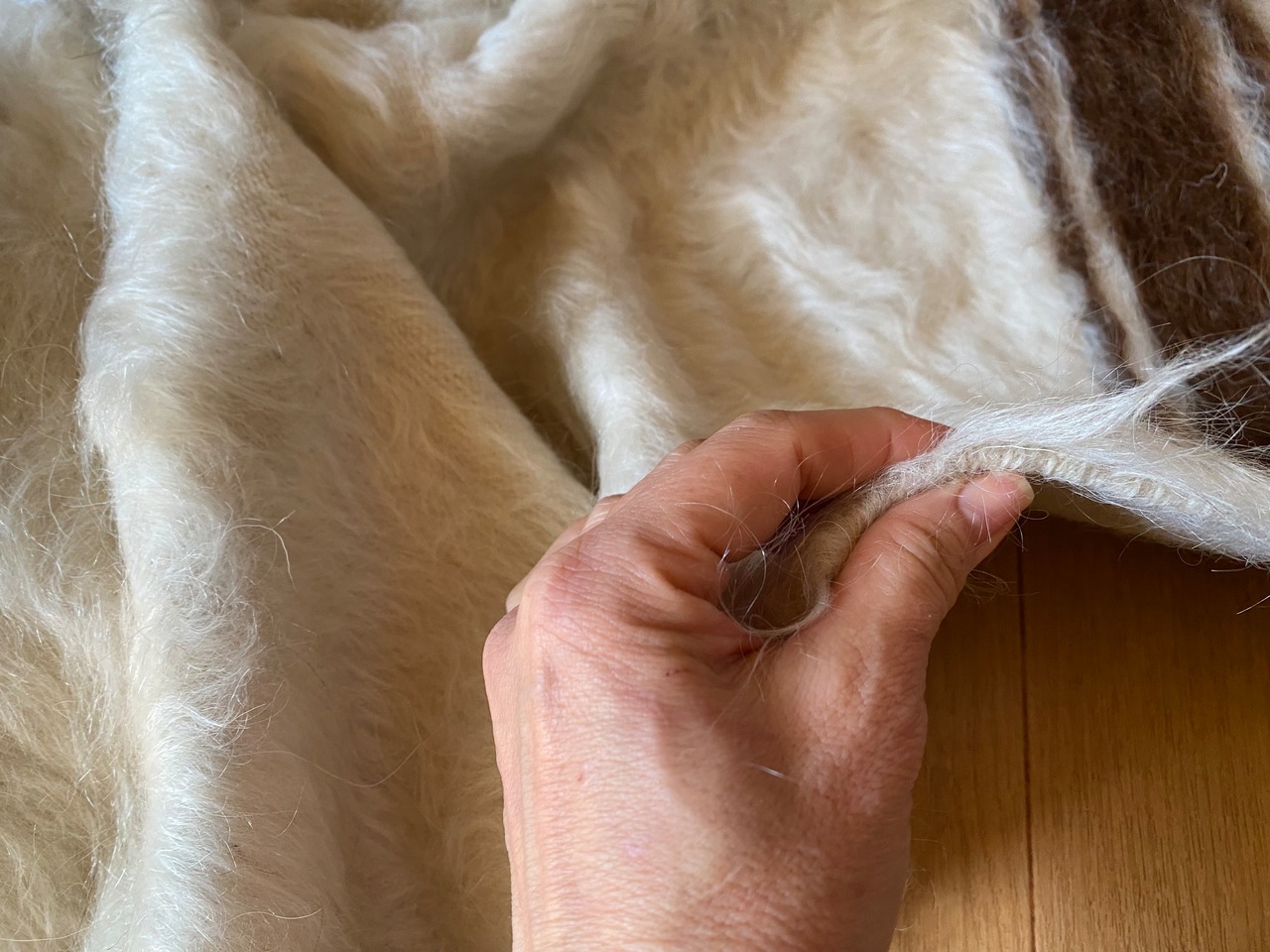新しいものにはない細かい柄で唯一無二です。経年でとても上質の柔らかいモヘアです。