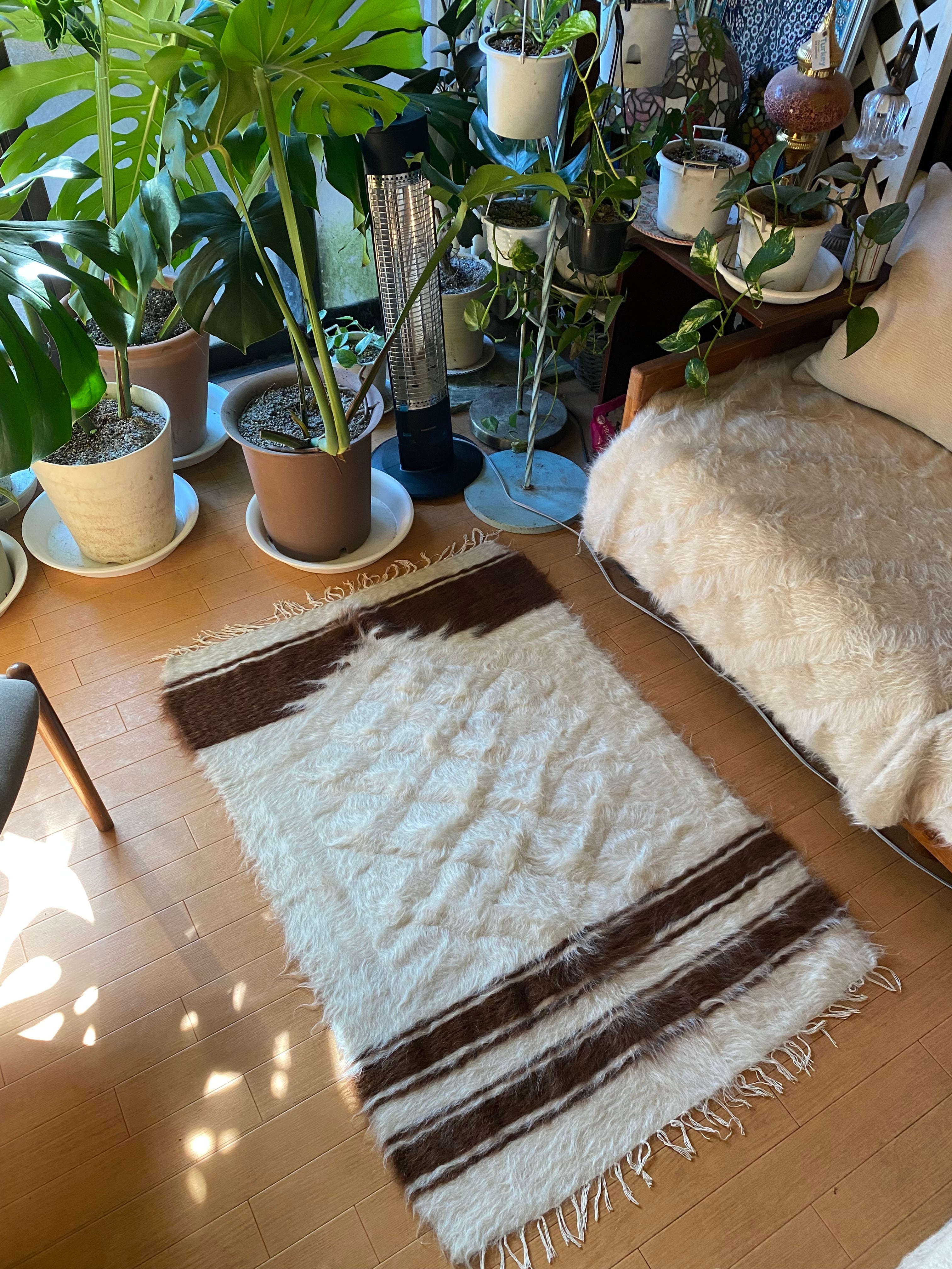 冬は毛がある面で、夏は裏面でキリムとしてお使いいただける優れものです。