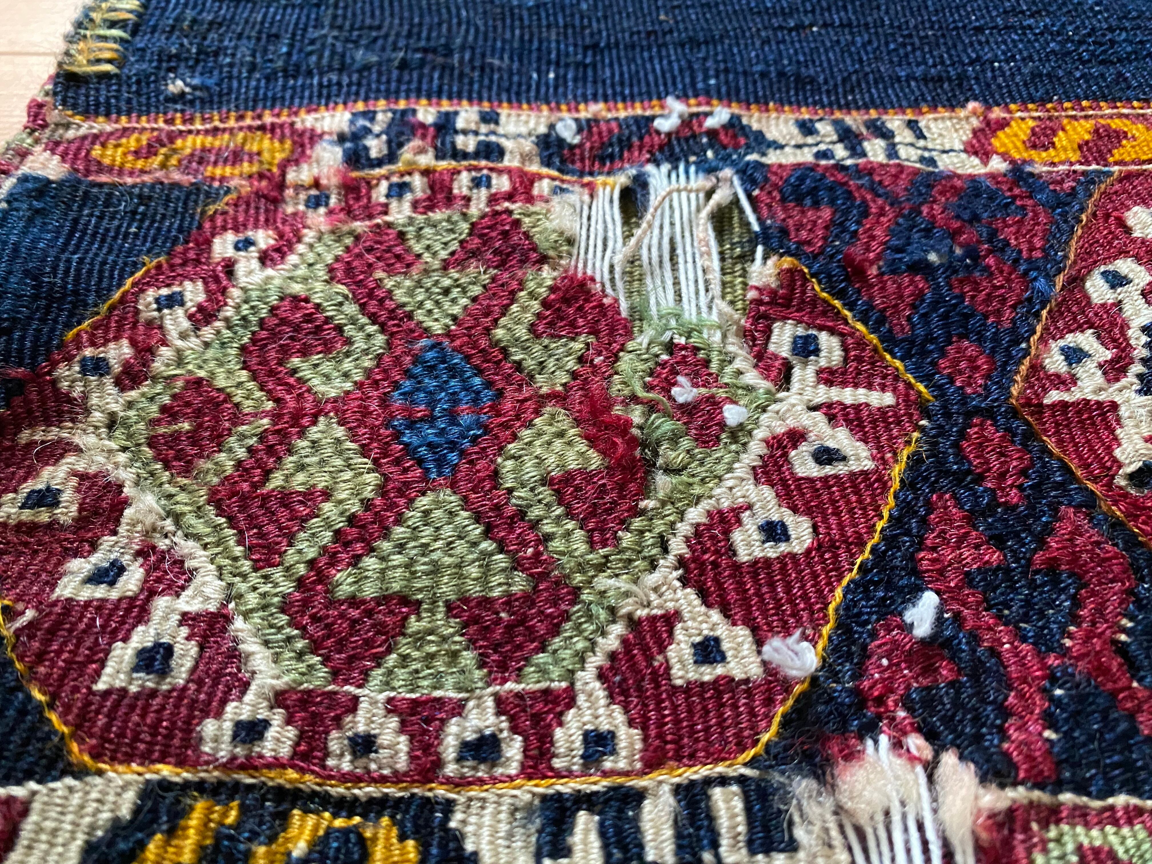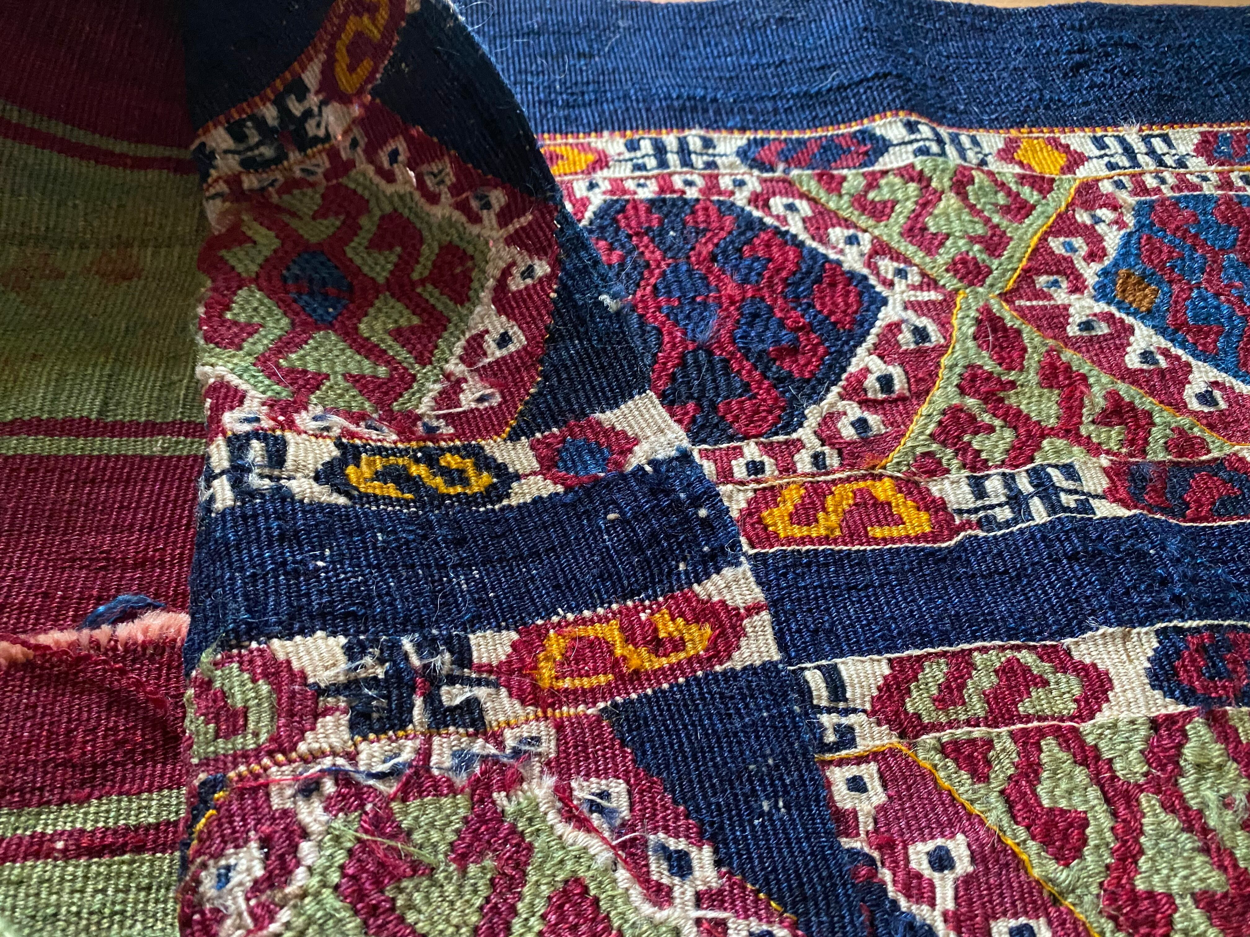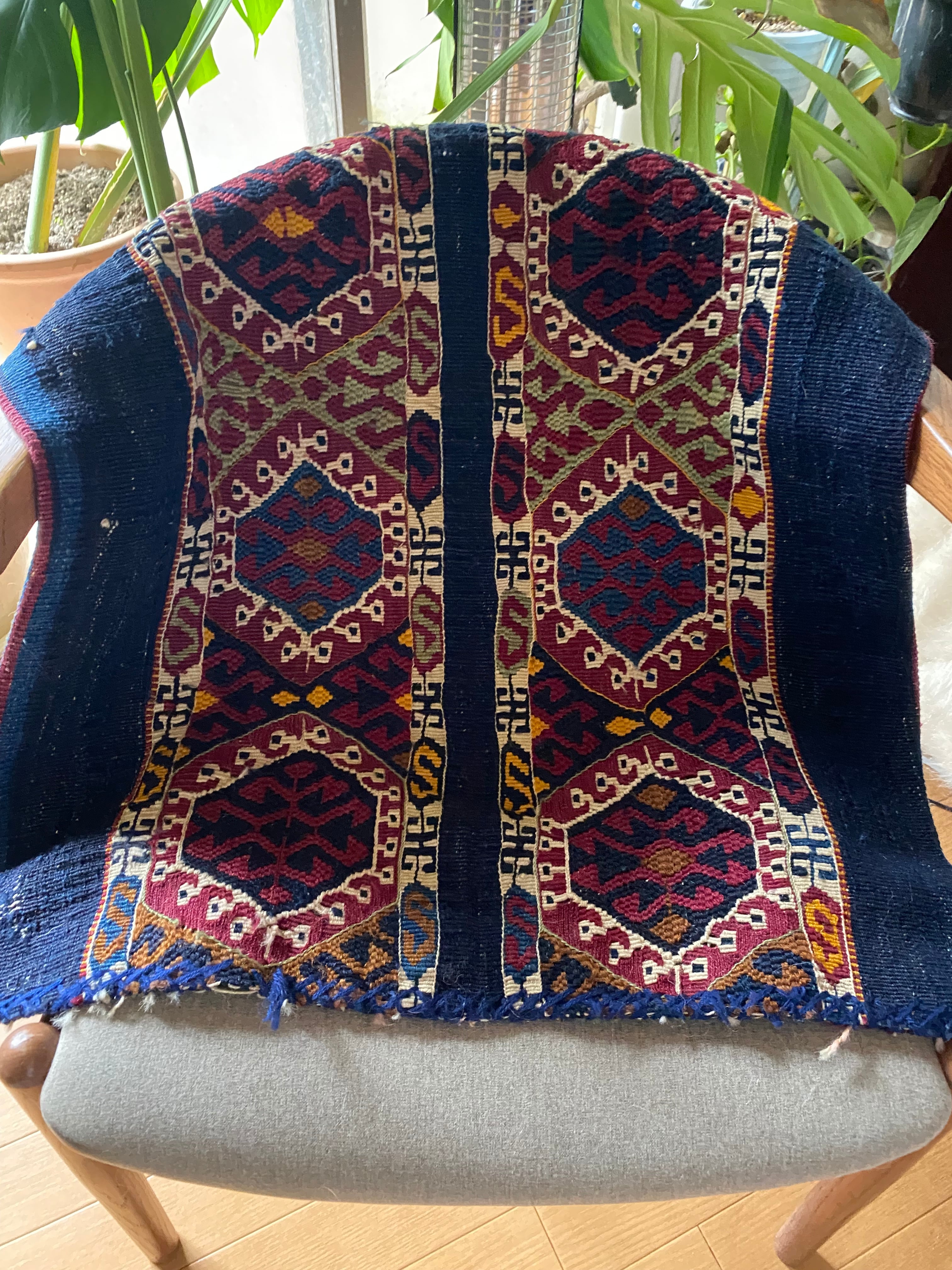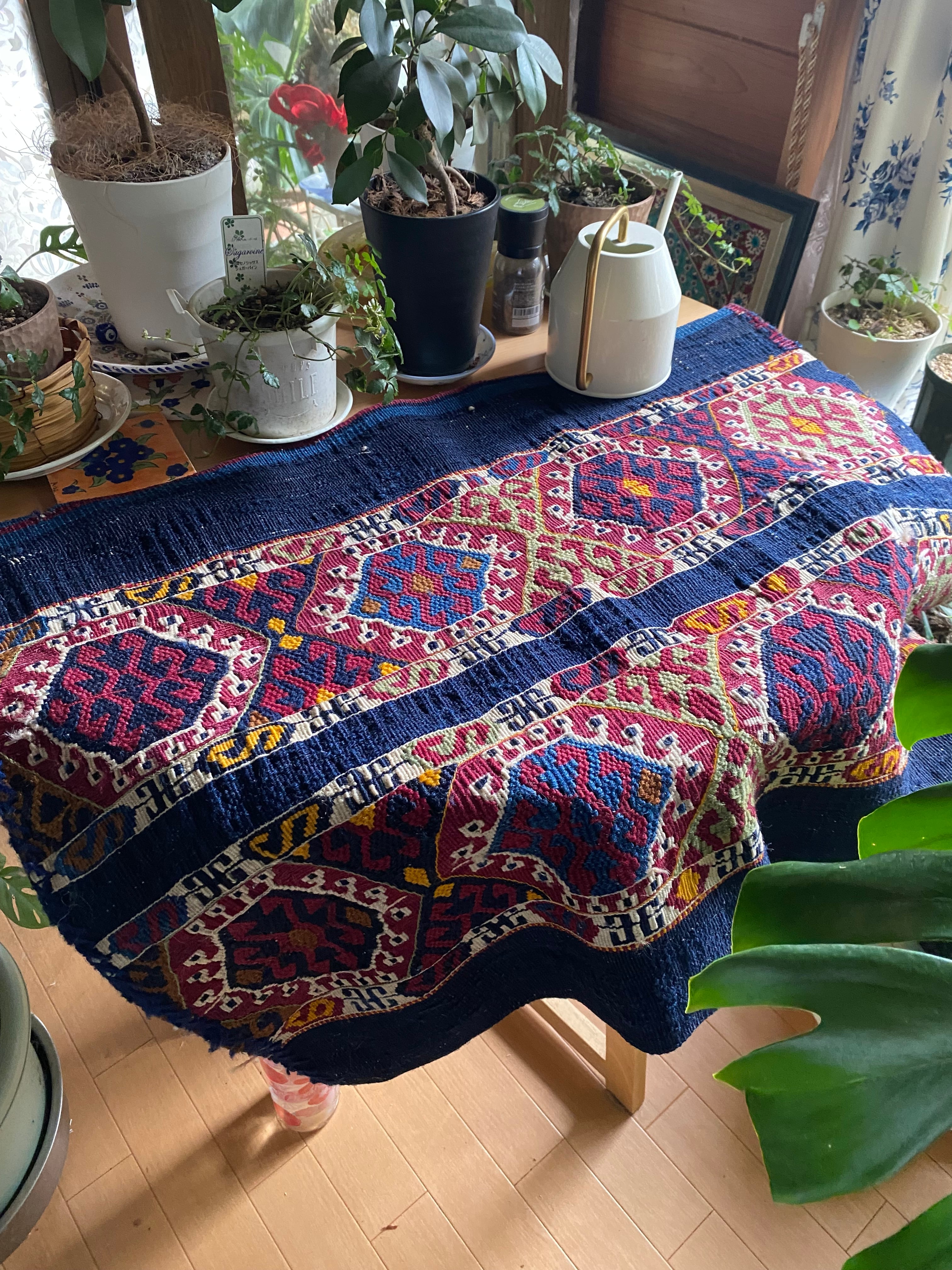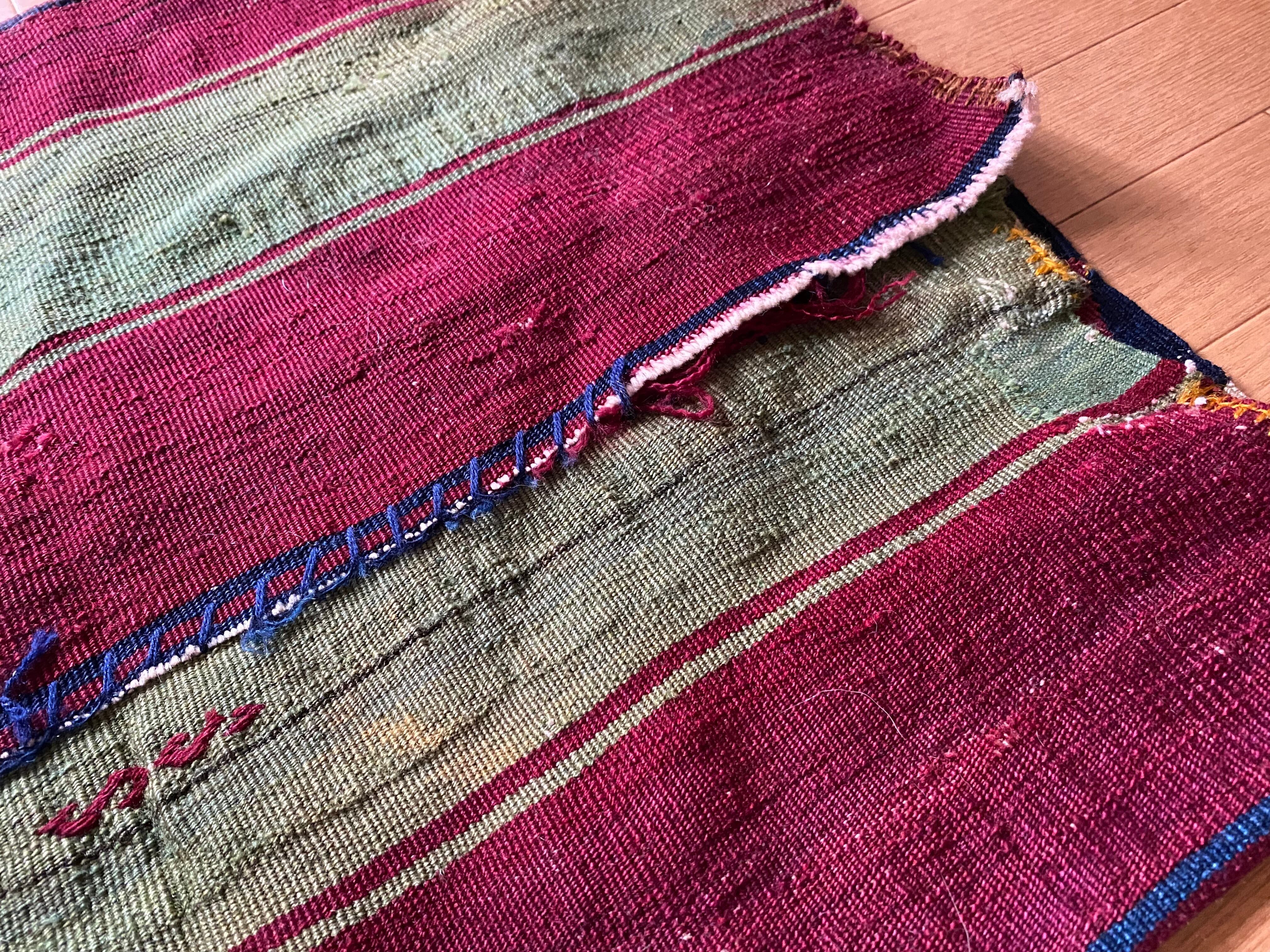 究極のアンティークキリム!見事な総草木染有名産地トルコのマラティヤシナンル!コチニールと藍色が素晴らしい滅多にない細かい柄の美しいスマックキリム!当店30年トルコ在住28年来沢山のキリムを日本にお届け!是非究極の一枚を!貴重なアンティークです
