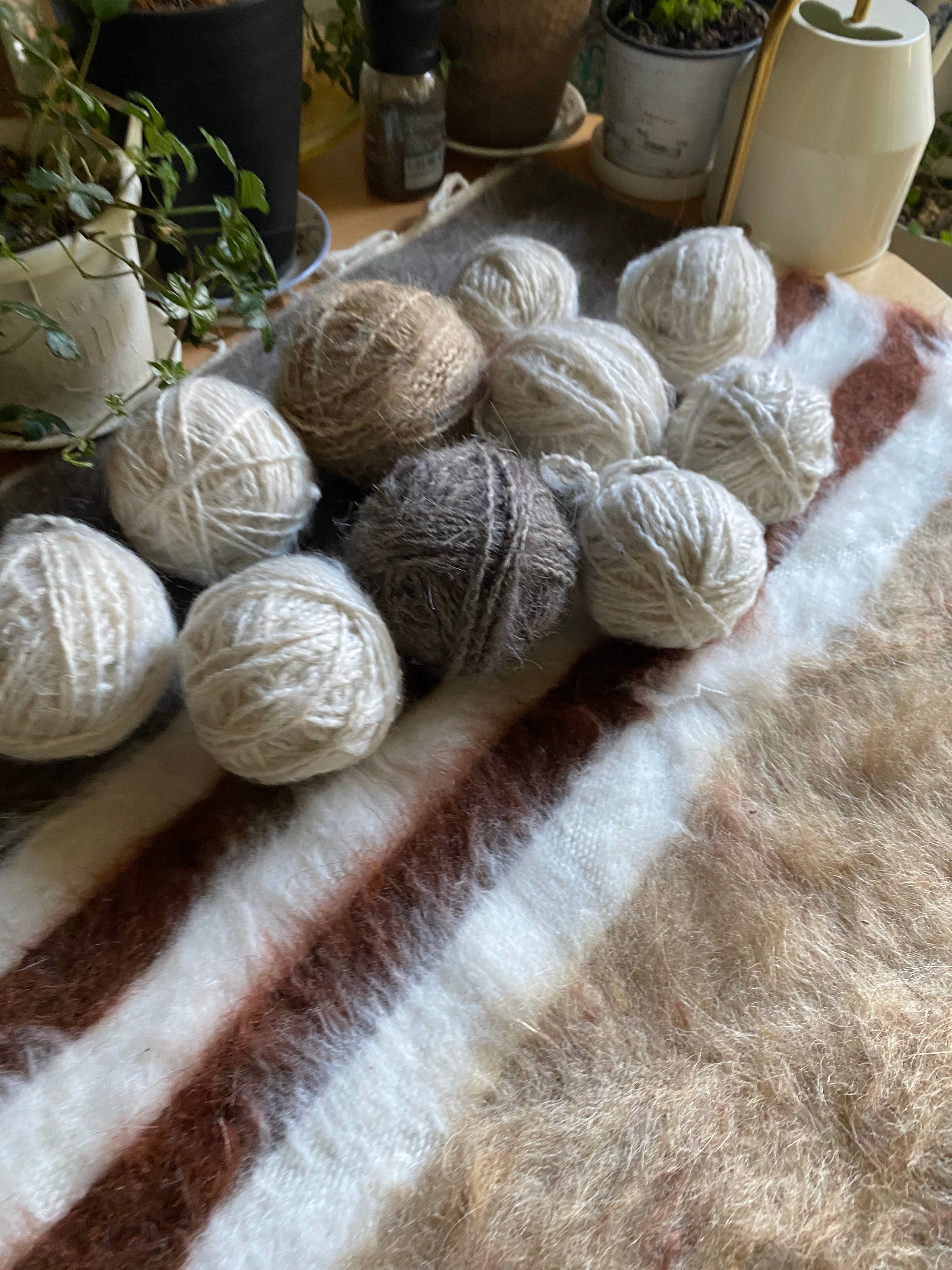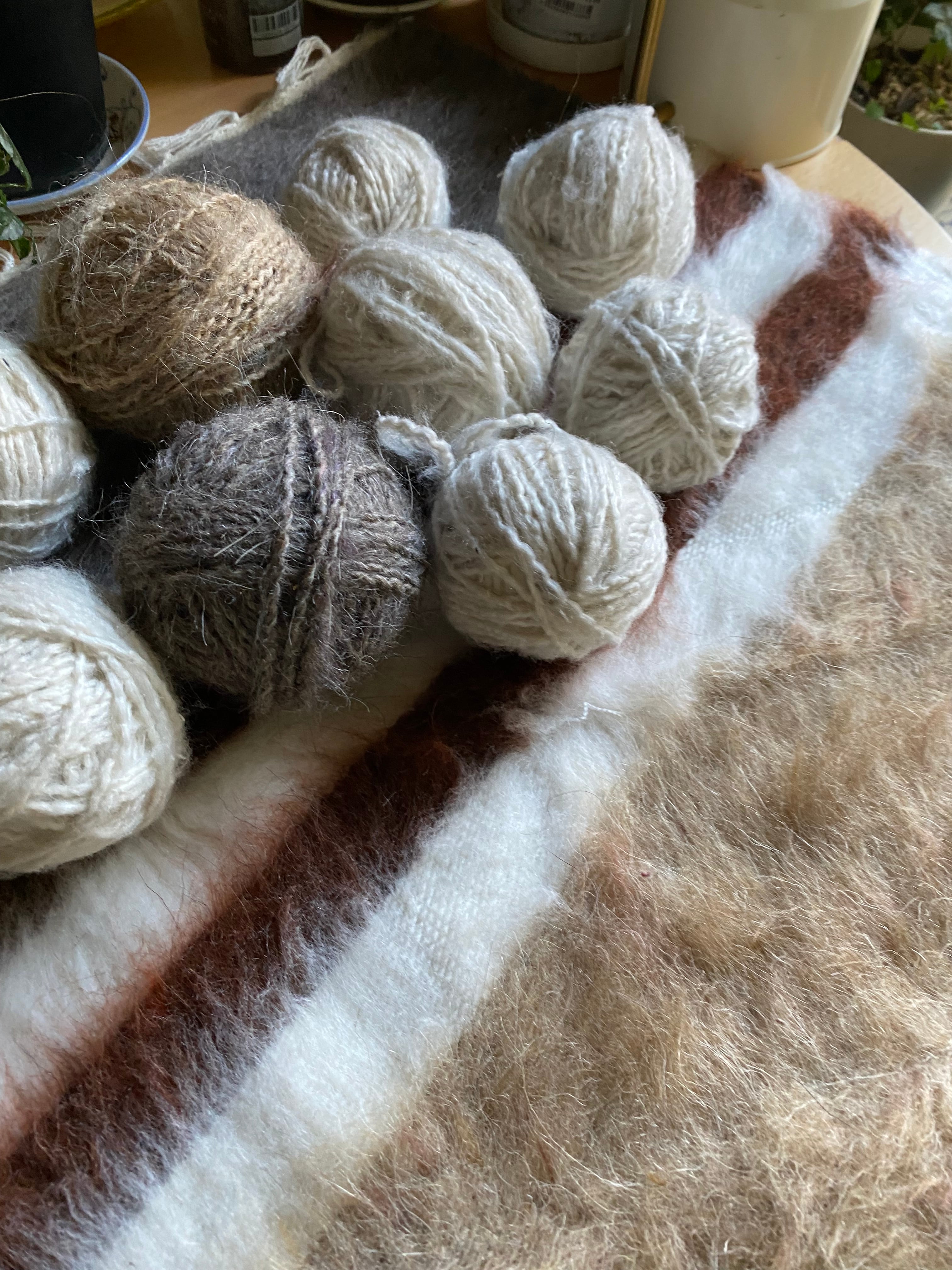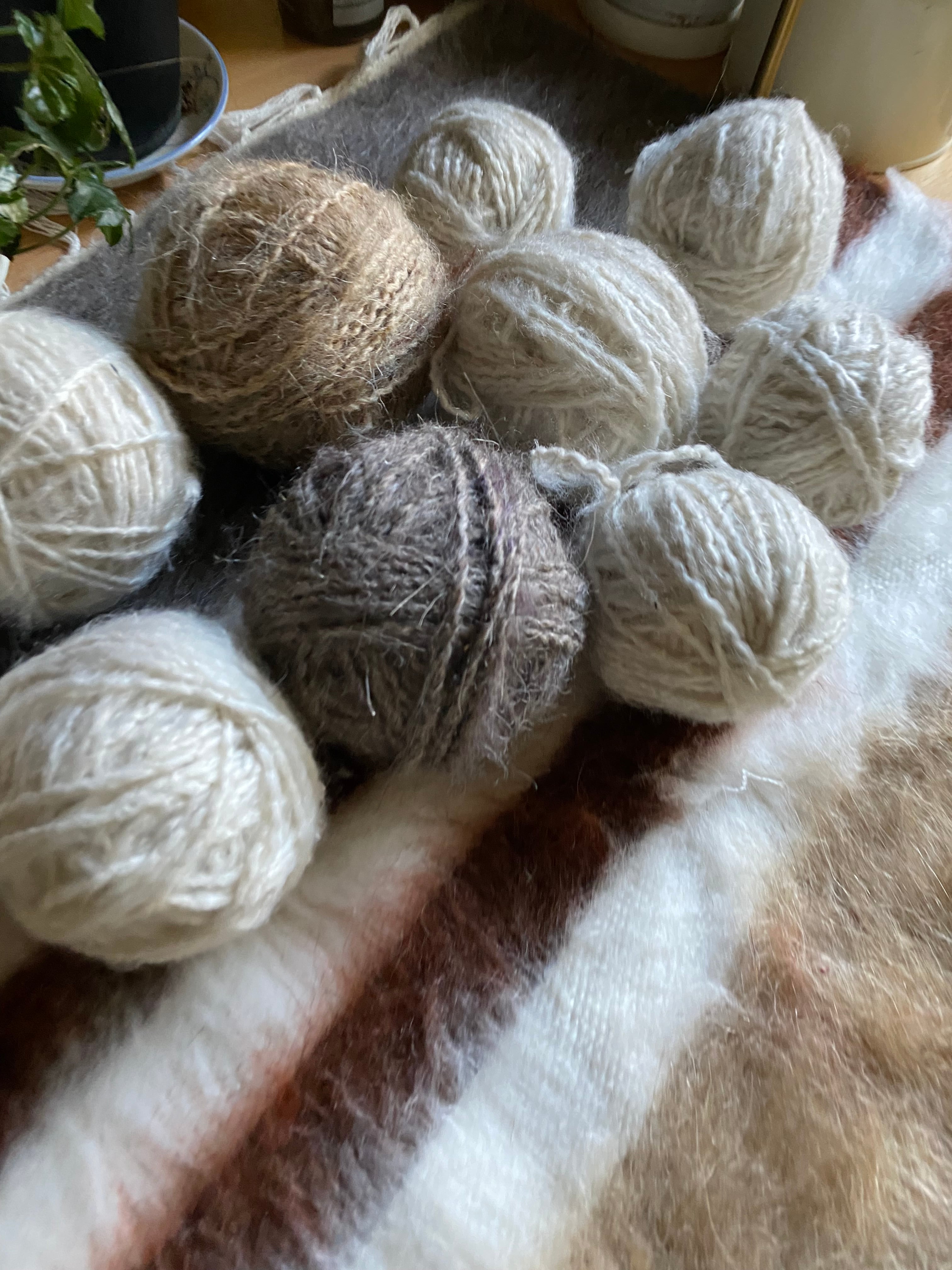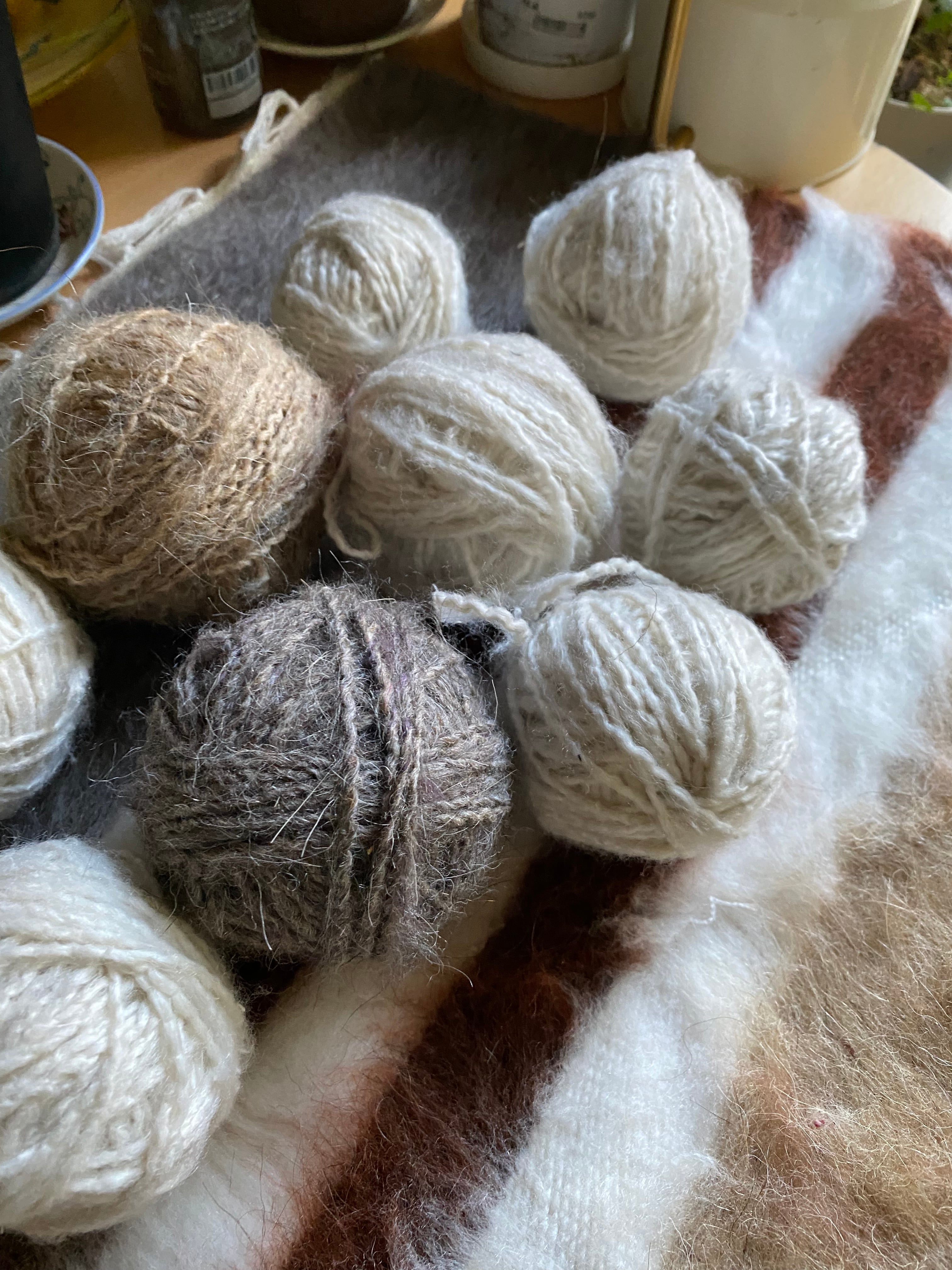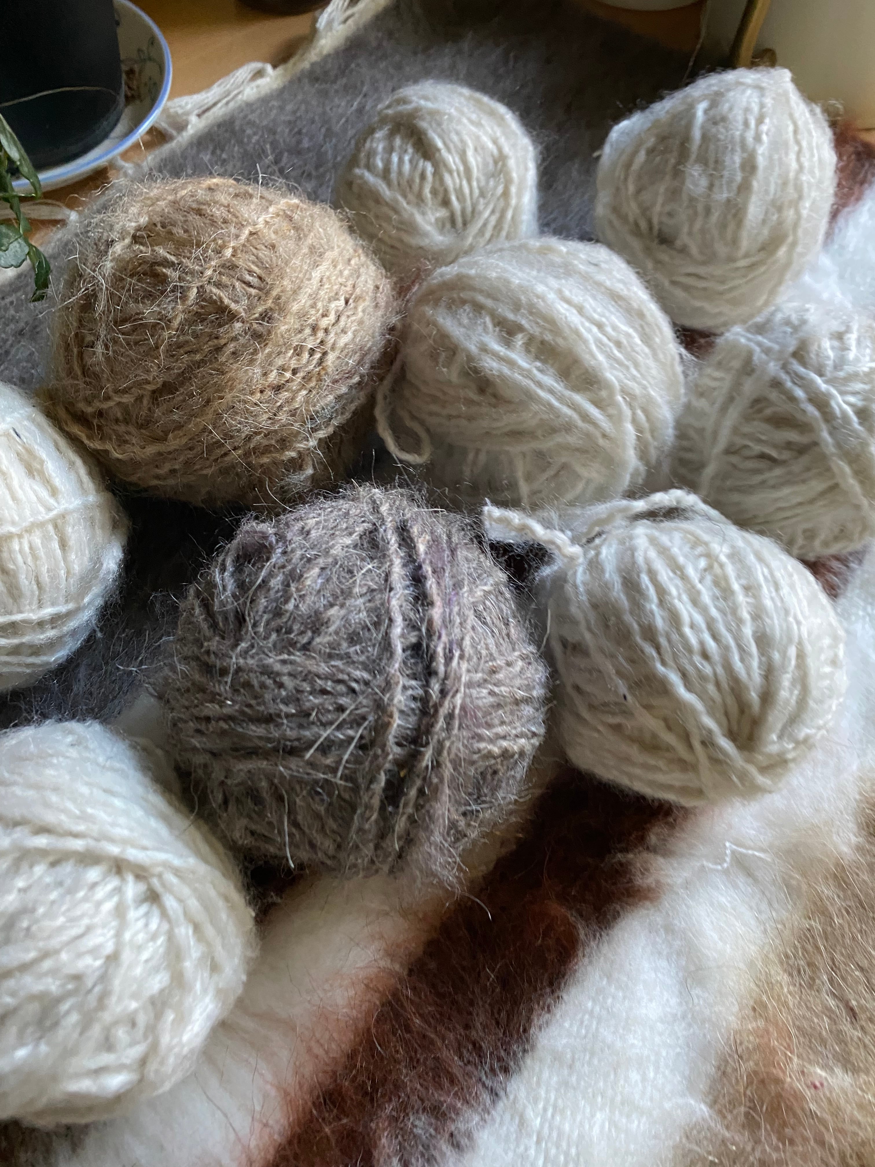 糸を再度バラして紡ぐ方もいらっしゃいましたのて、短めの毛糸(1m未満)も巻き込んではいっています。