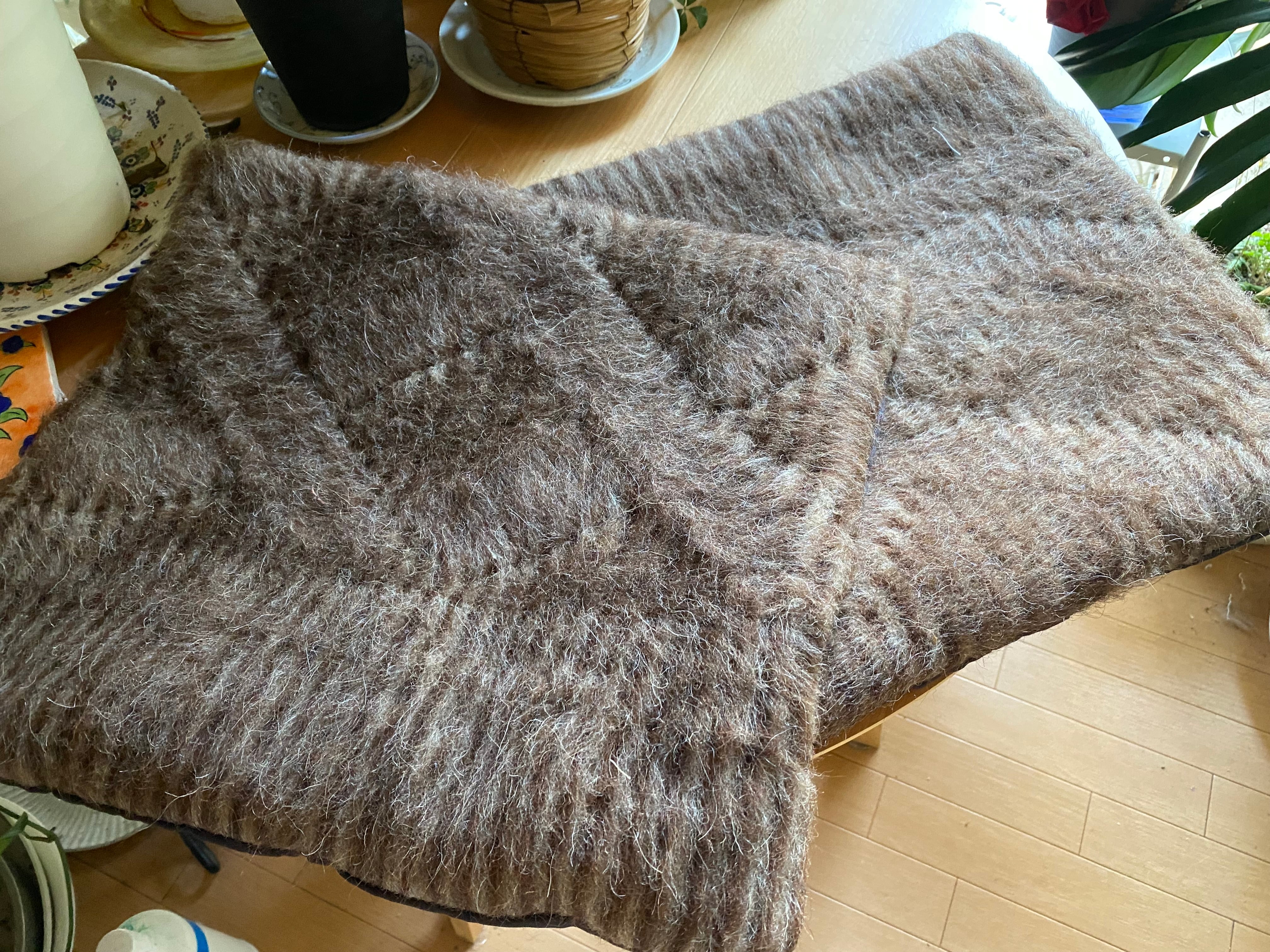 自然の山羊の毛を手で紡いだものが使われていますので、たまーにもみ殻がたまについていたり木の破片みたいなものが稀に織り込まれていることがありますので、ご了承ください。 できるだけ検品して取り除いていますが取り切れないこともありますのでご了承ください。