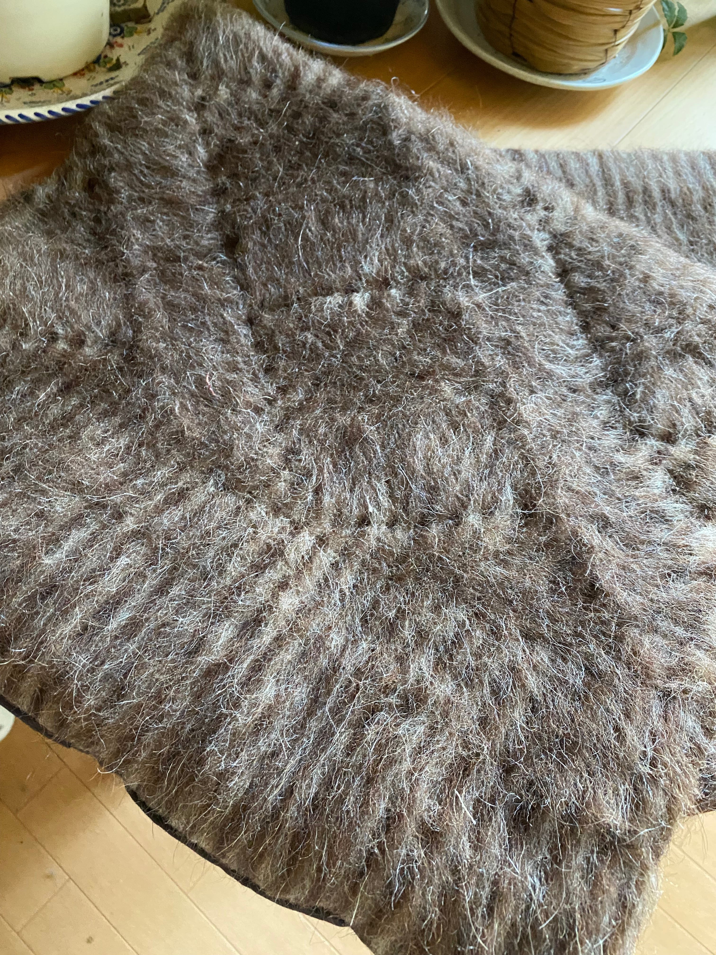 特にアンゴラ山羊からのモヘヤを使って織られているこのシイルトは大変価値も高いもので、艶もあり、素晴らしく温かいです。 自然のアンゴラヤギの毛で織られていますので、独特のくるくるとした感じも可愛く、とてもナチュ ラルな感じです。アンゴラ山羊は18世紀の中ごろまでオスマントルコが飼育を独占していたらしいです。