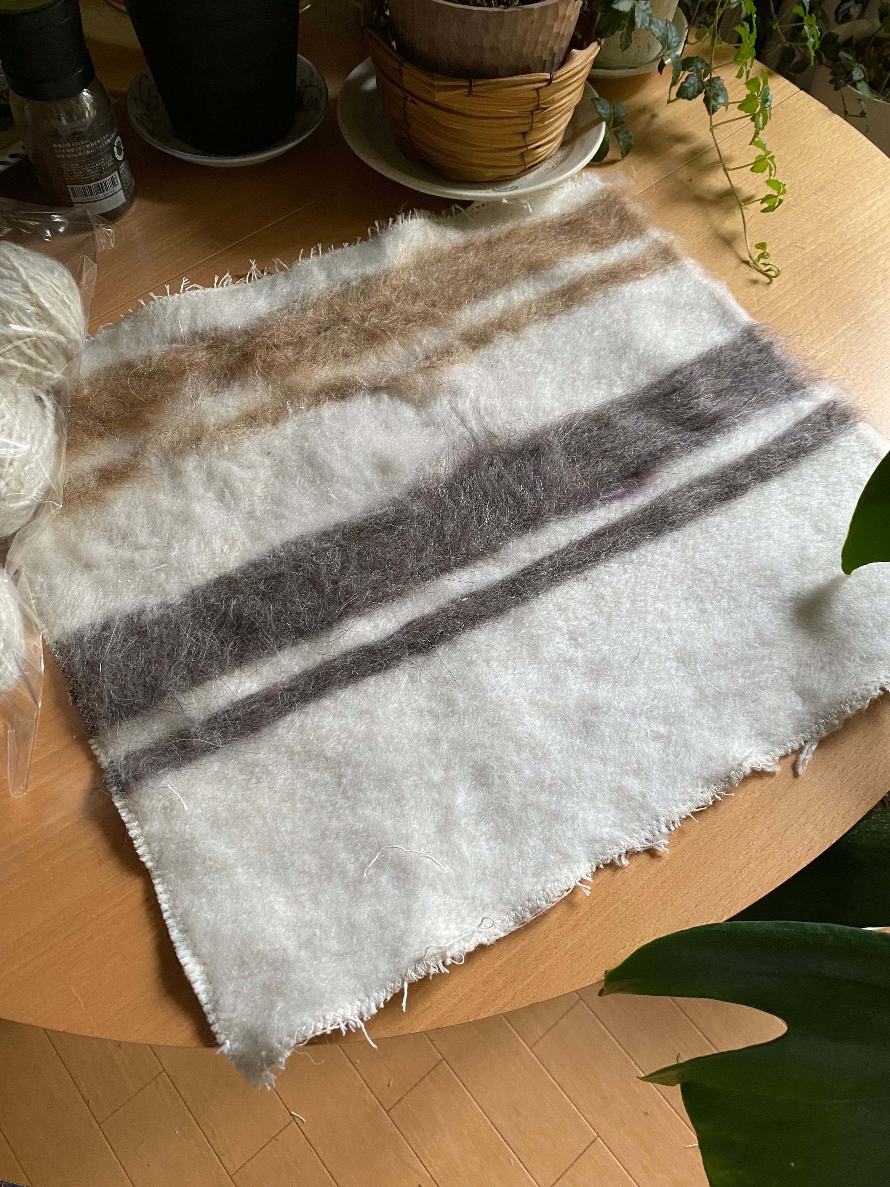 また、毛をけば立てて幾何学模様が入っておりますが、ウールではこのような毛羽立ちの模様はできないそうです。