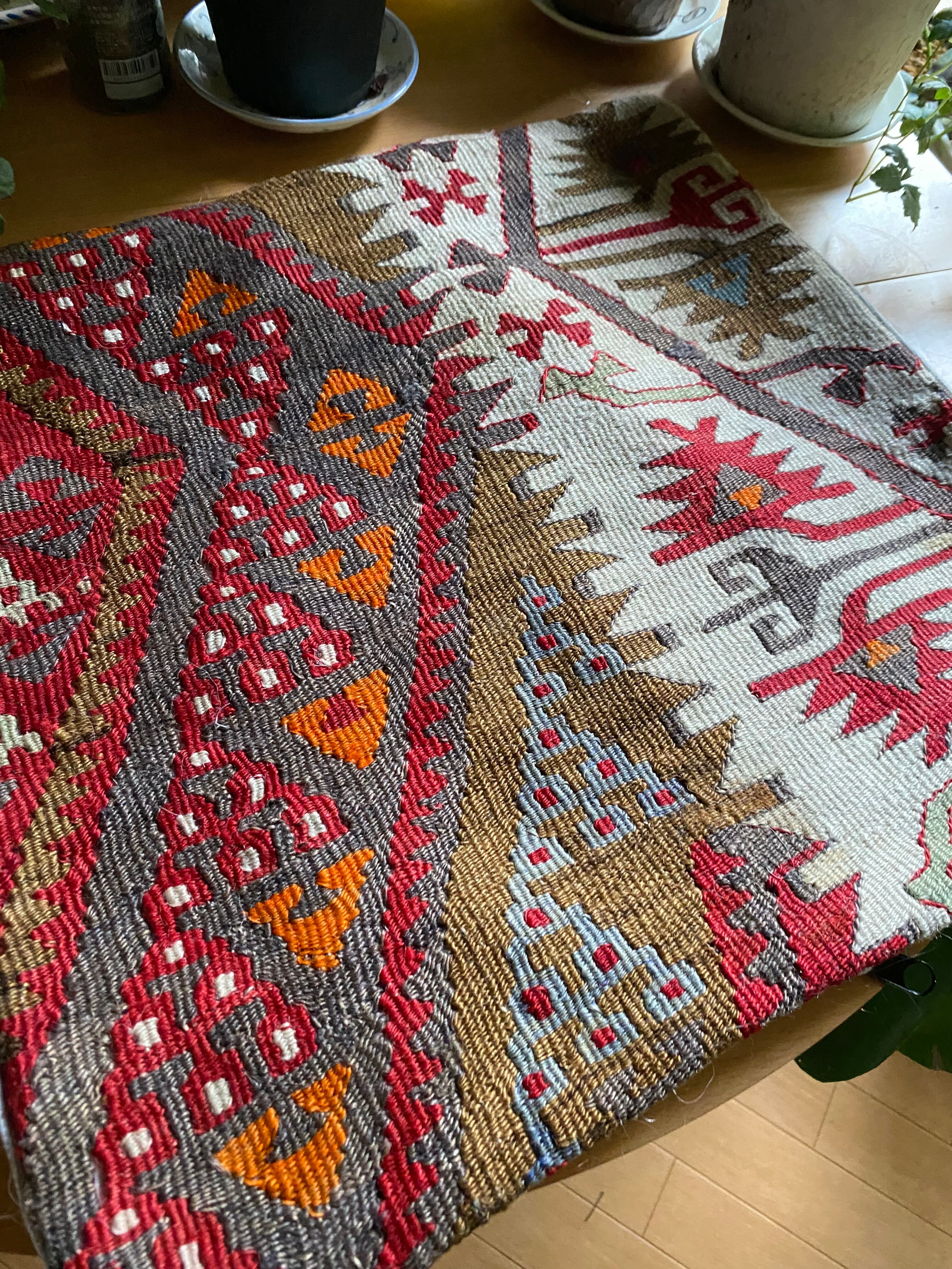 キリム初 めての方もこのクッションカバーを手に入れれば絶対にキリムがお好きになるは ず!まずはだまされたと思ってご入札ください!!クッション1枚から始まるキリ ムの世界です!!ぜひ現地よりいいものを手に入れてください!