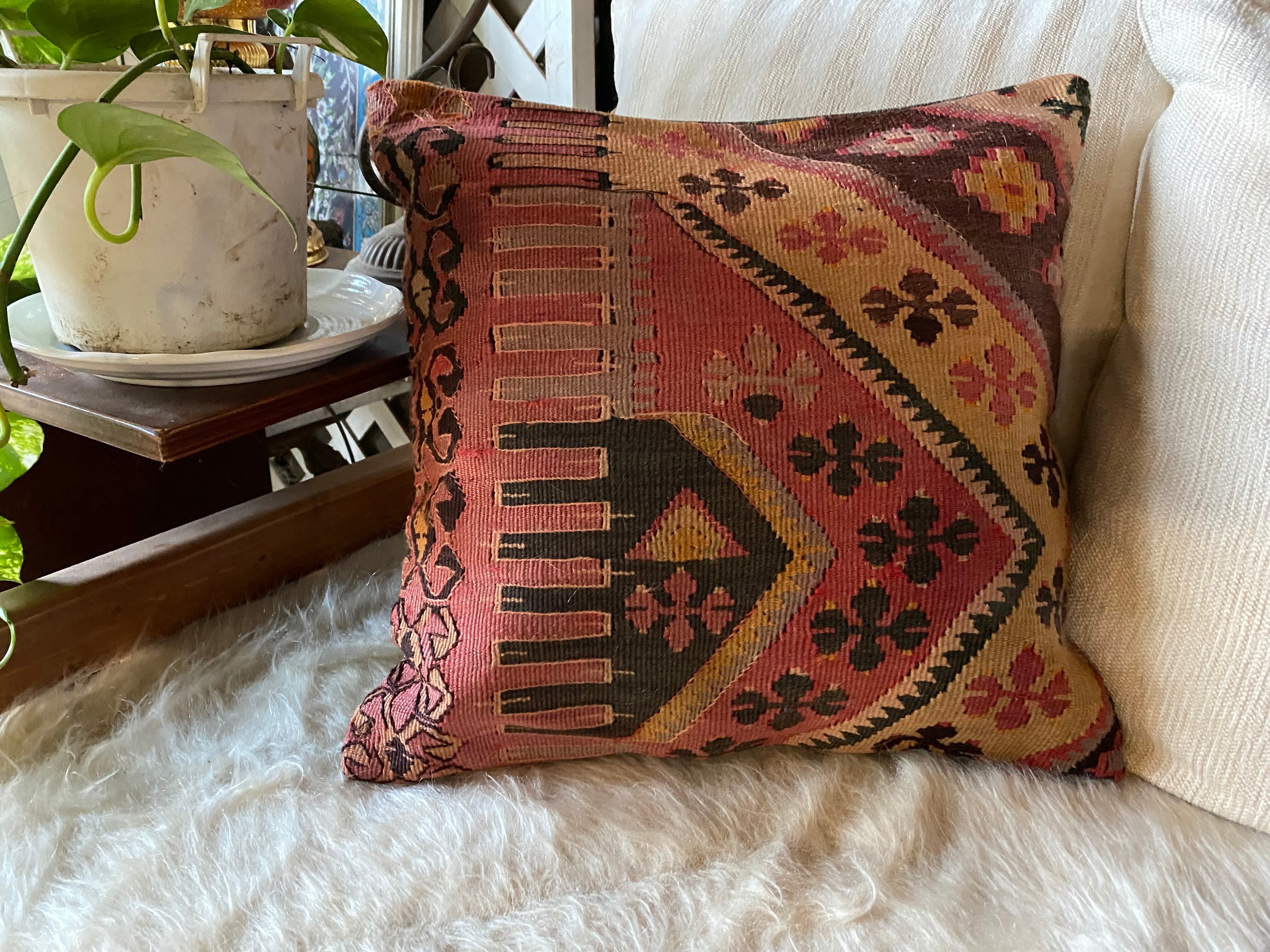 トルコ発1ランク上の細い糸で織られたカイセリキリムクッションカバーしなやかな極上のオールドキリム使用42×421枚で素敵なインテリアに