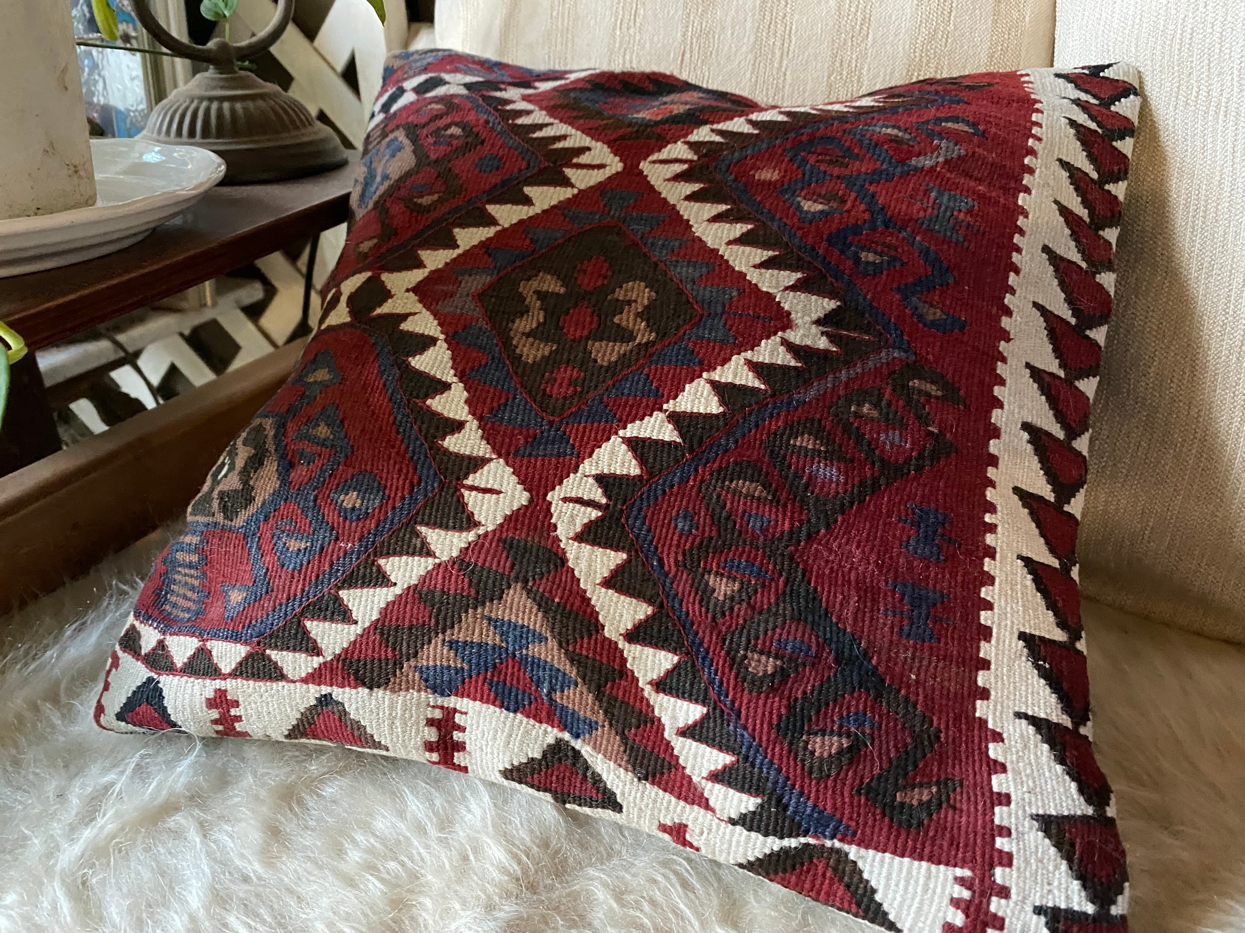 キリム初 めての方もこのクッションカバーを手に入れれば絶対にキリムがお好きになるは ず!まずはだまされたと思ってご入札ください!!クッション1枚から始まるキリ ムの世界です!!ぜひ現地よりいいものを手に入れてください!