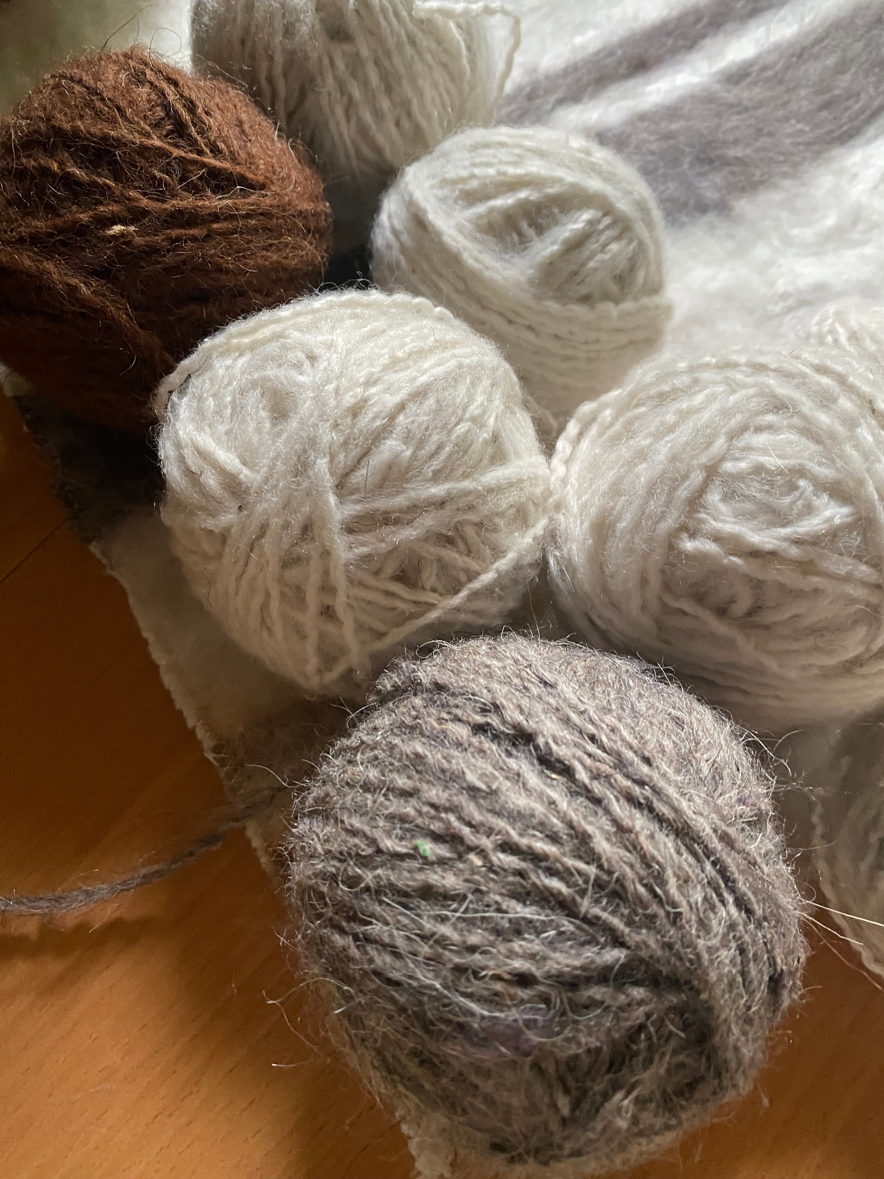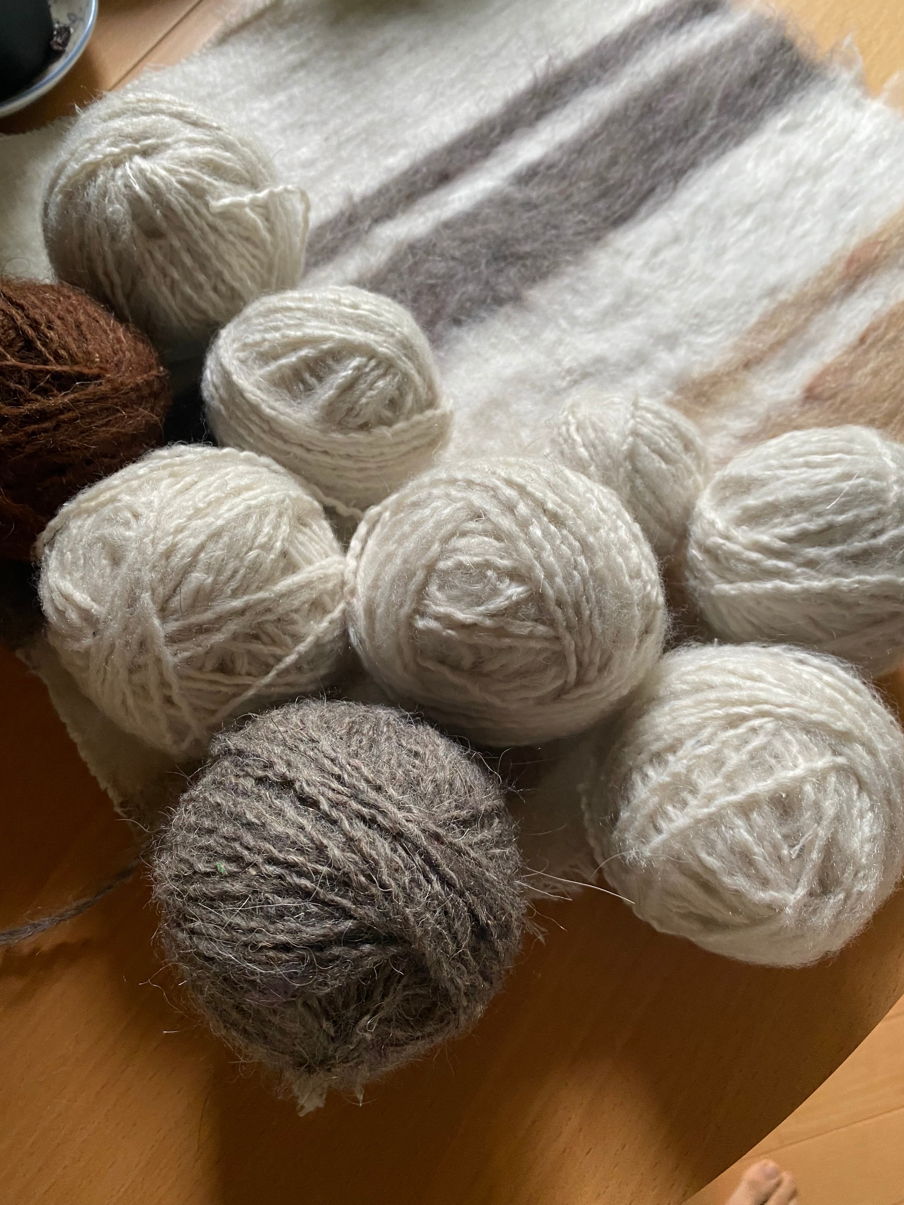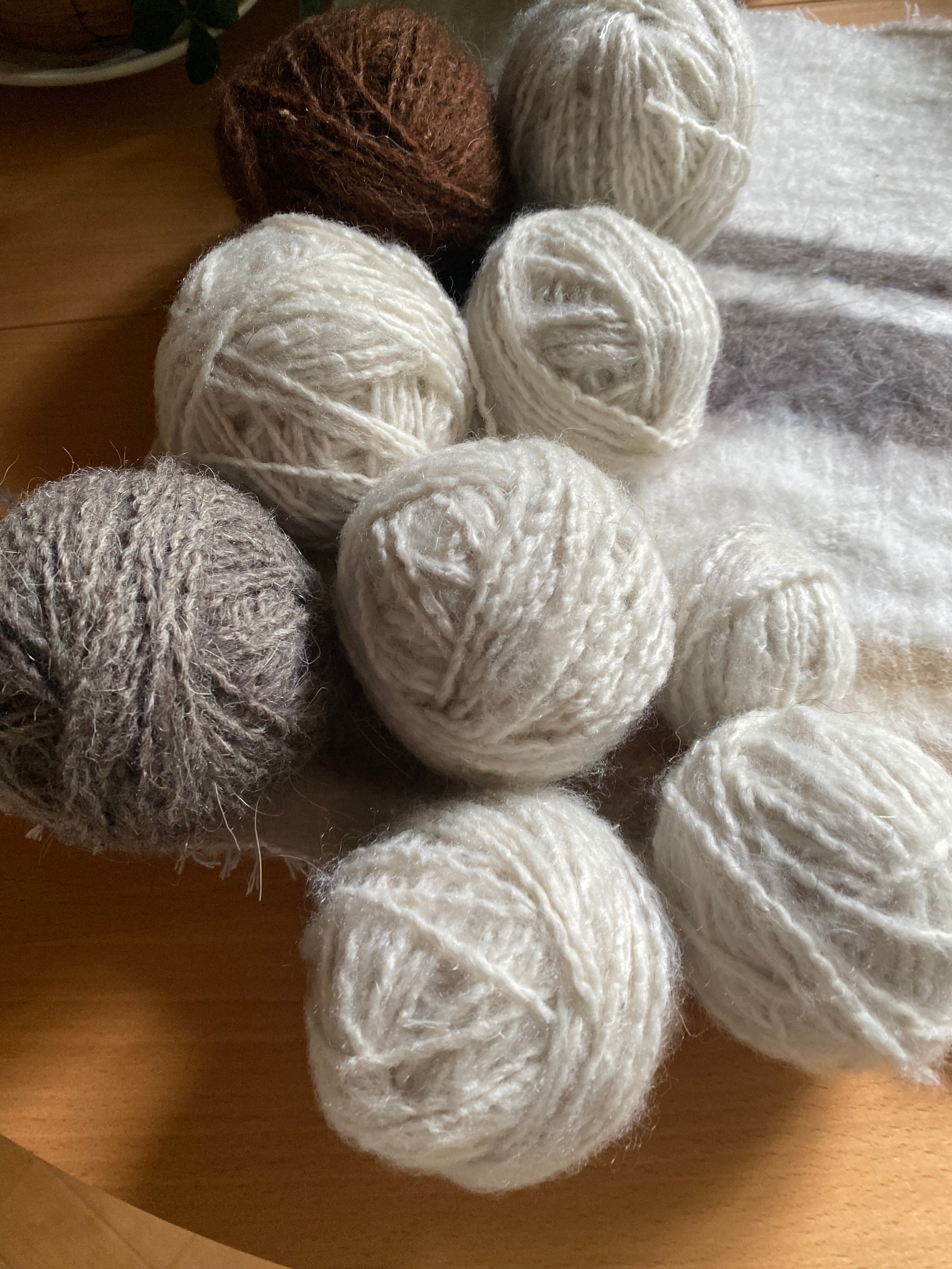 糸を再度バラして紡ぐ方もいらっしゃいましたのて、短めの毛糸(1m未満)も巻き込んではいっています。