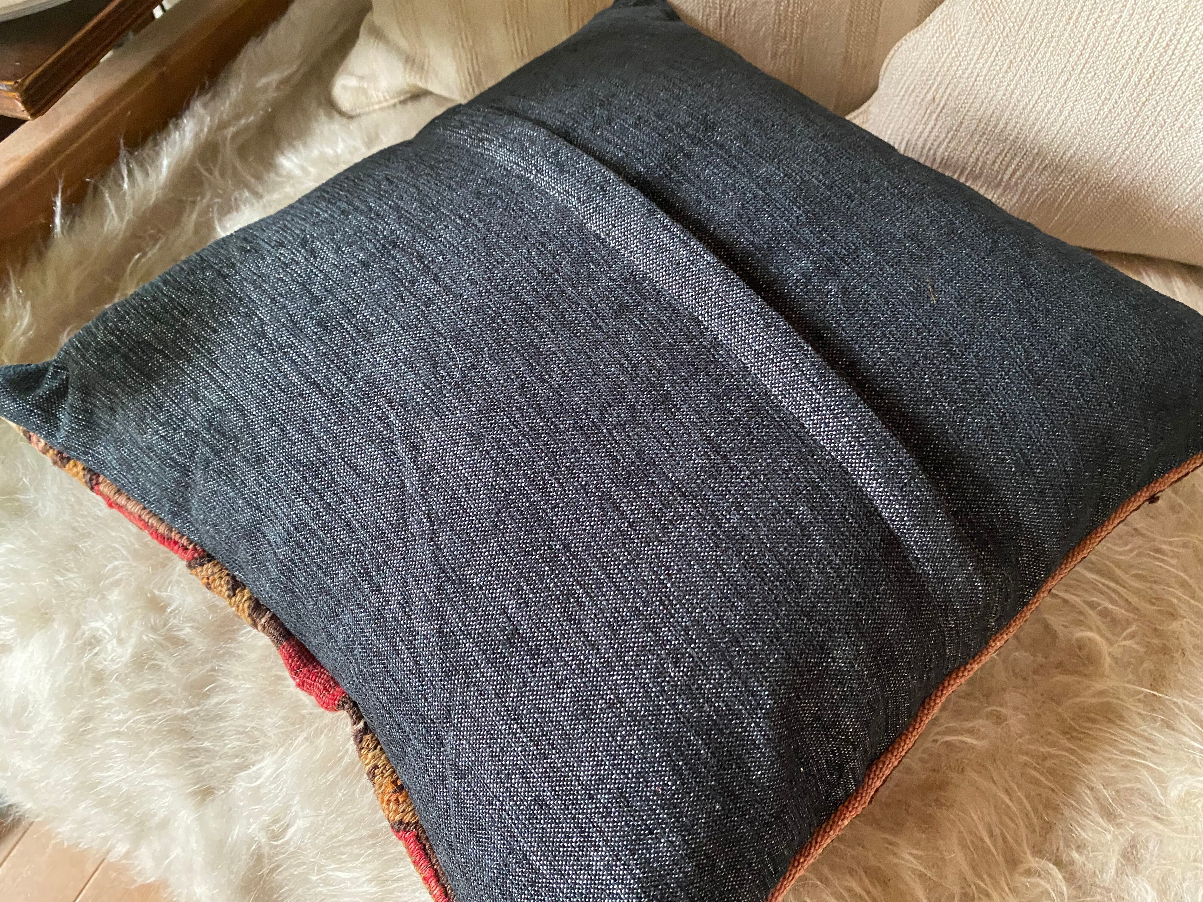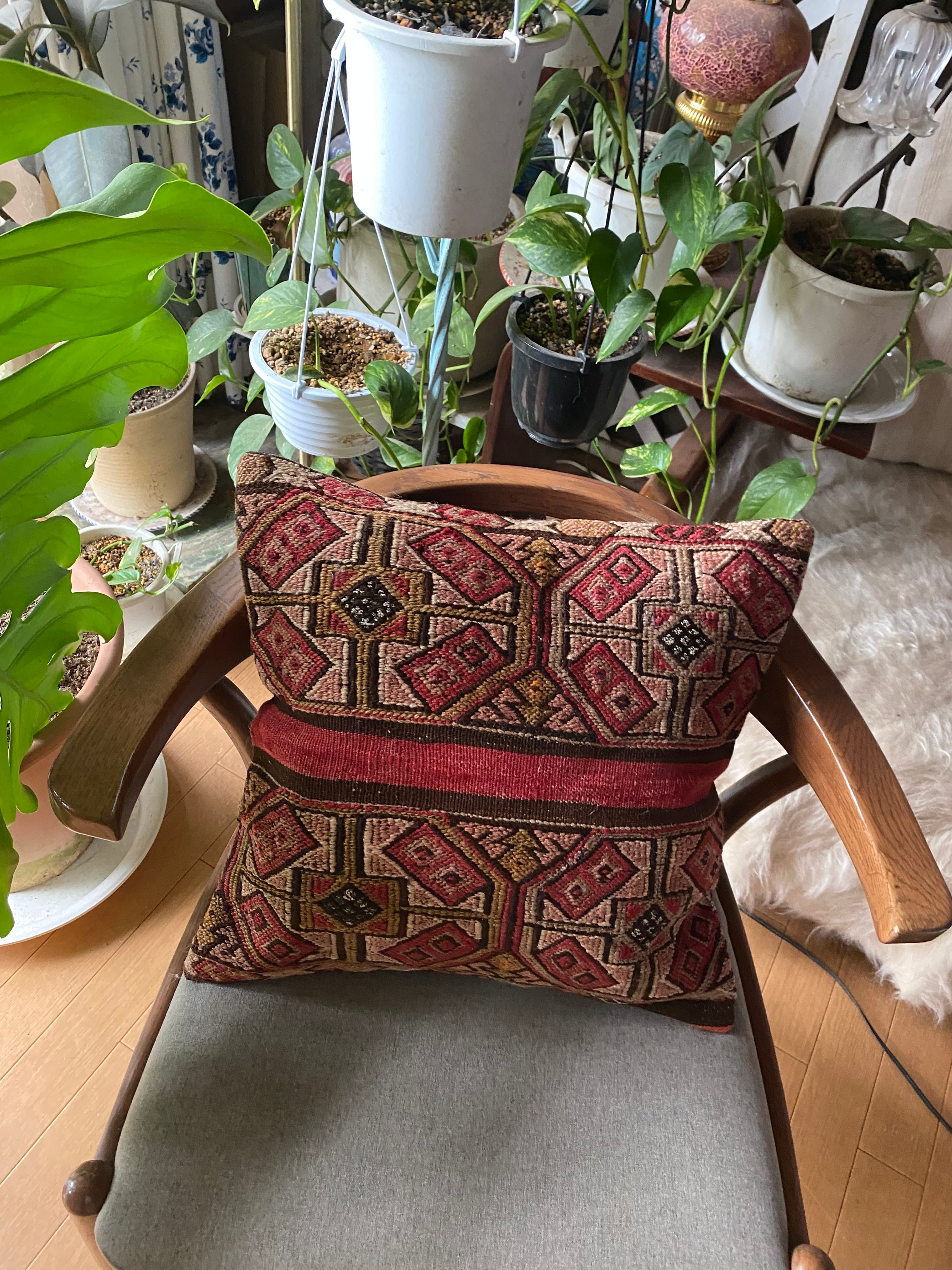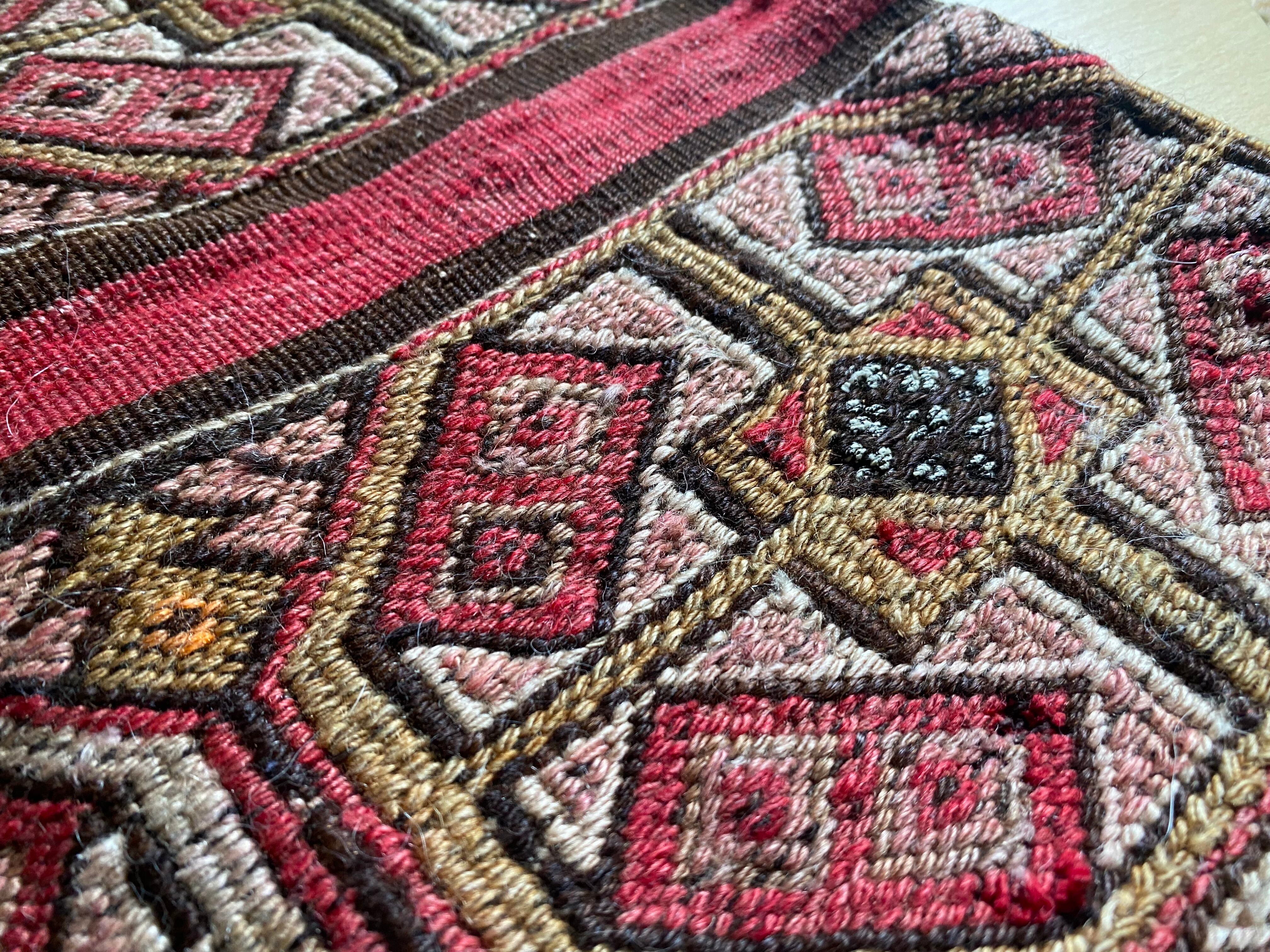 1ランク上のクッションカバー!大変貴重アンティークアダナチュヴァルからのクッションカバー!シムも入った貴重なアンティークキリムからのスマック織びっしり!