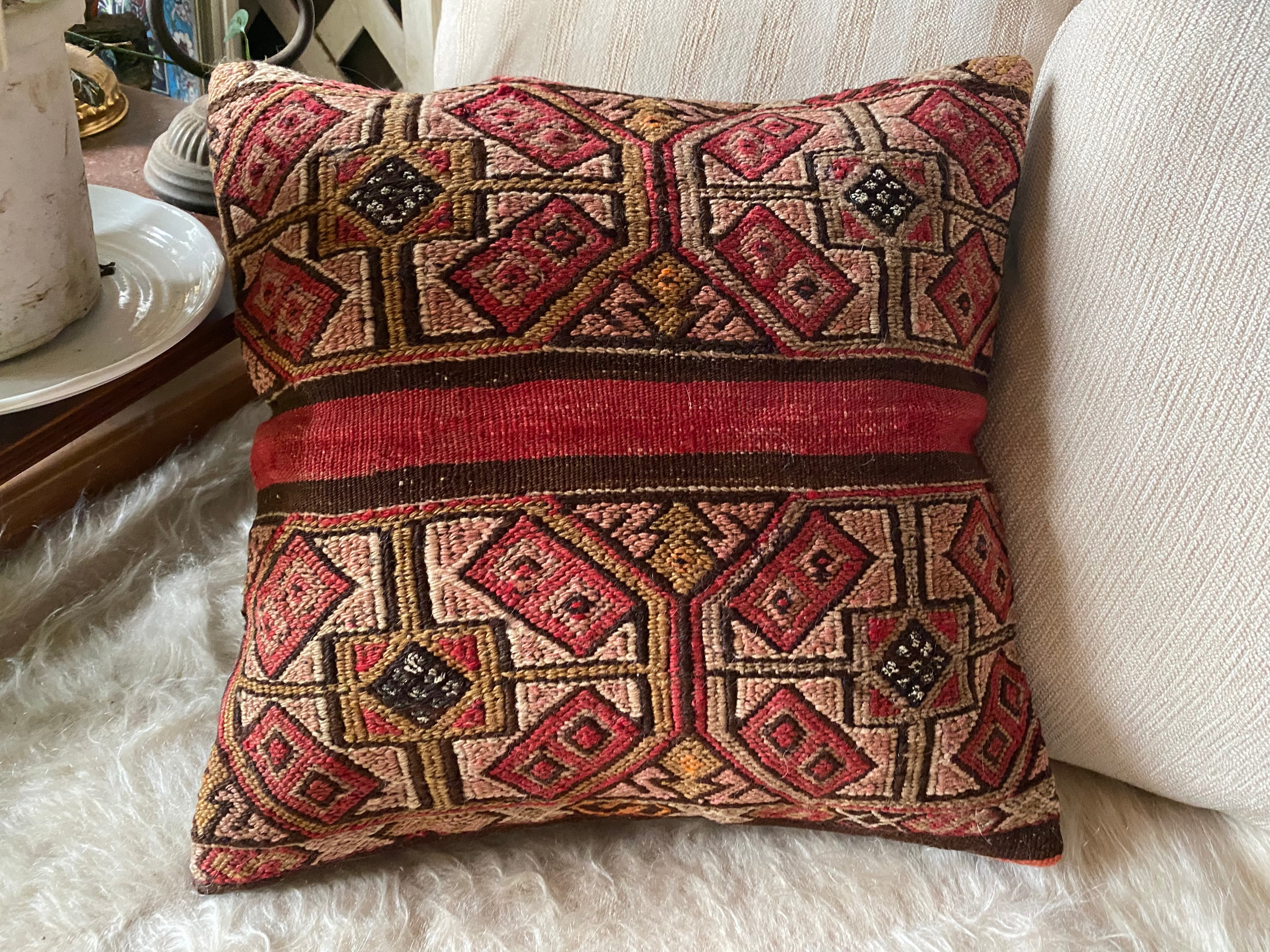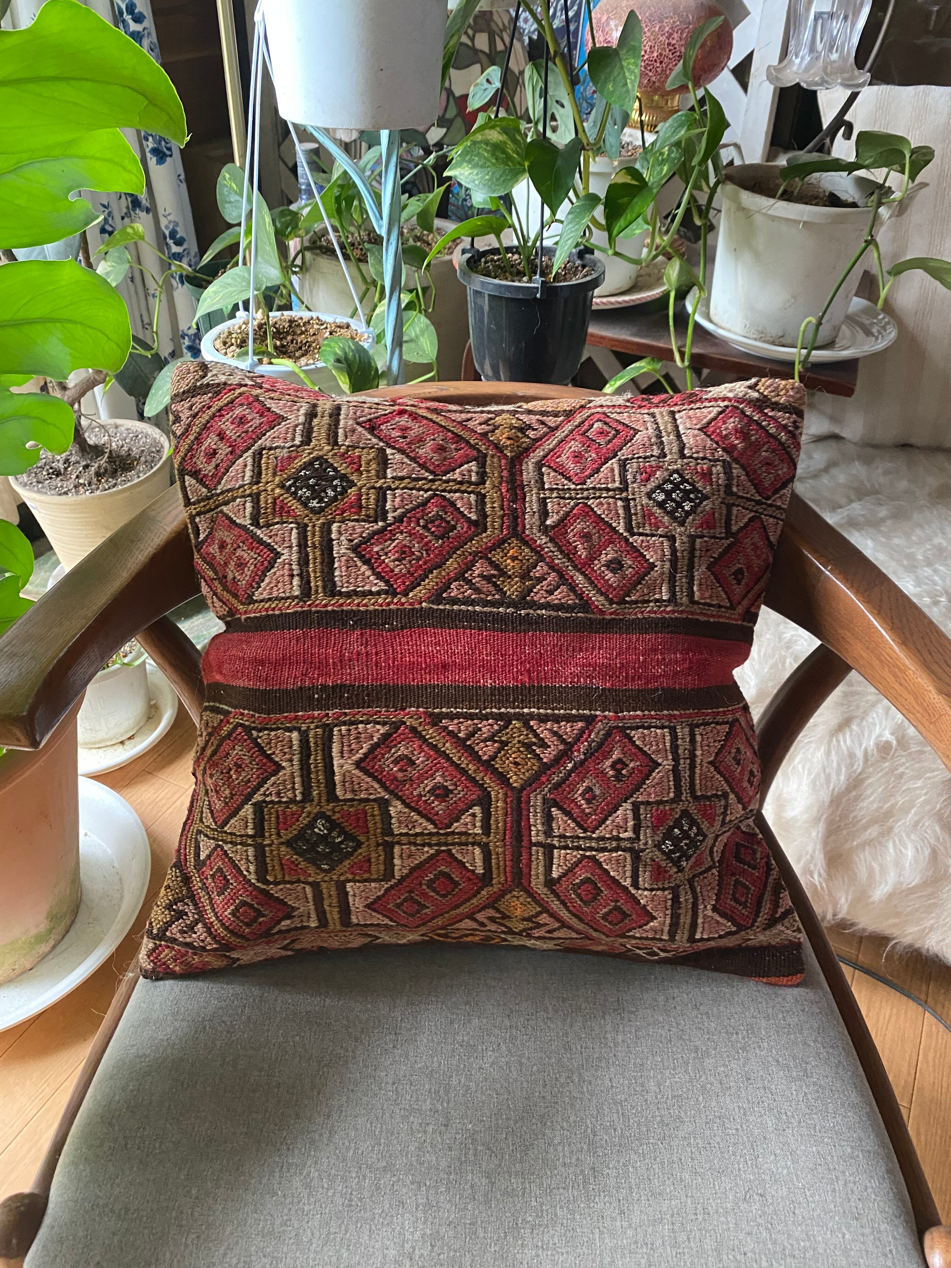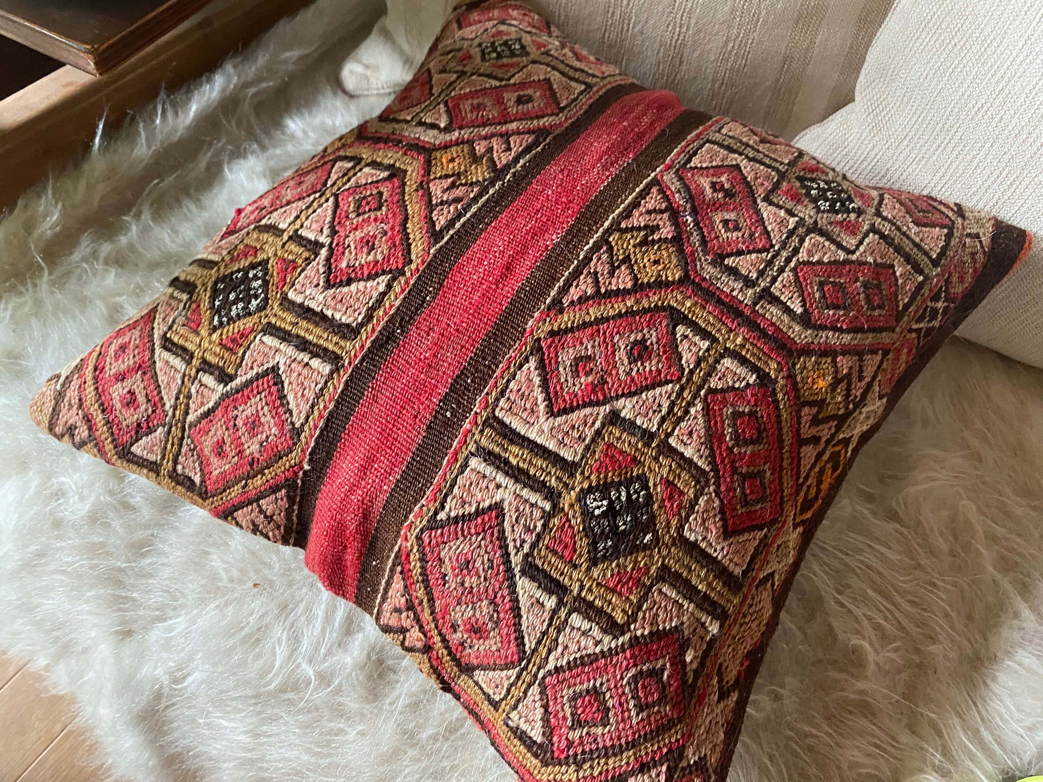 1ランク上のクッションカバー!大変貴重アンティークアダナチュヴァルからのクッションカバー!シムも入った貴重なアンティークキリムからのスマック織びっしり!