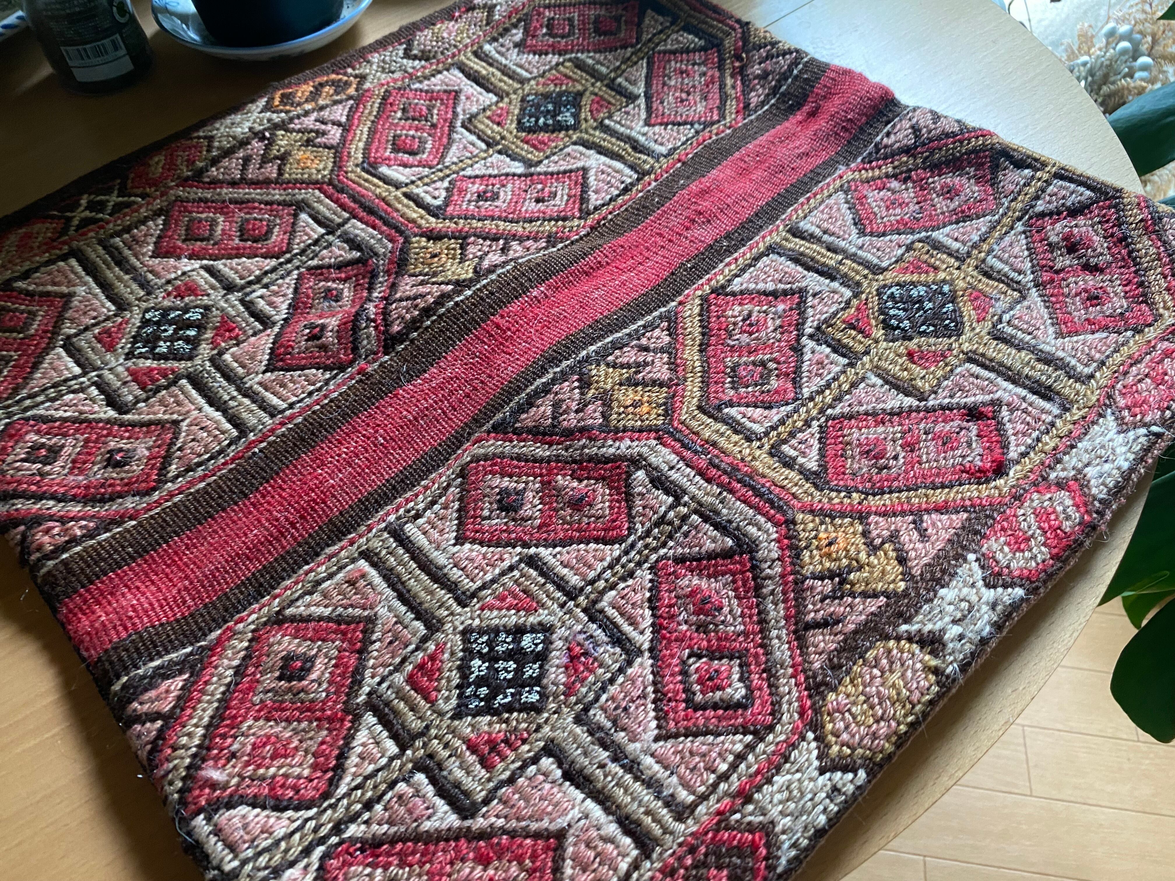 キリム初 めての方もこのクッションカバーを手に入れれば絶対にキリムがお好きになるは ず!まずはだまされたと思ってご入札ください!!クッション1枚から始まるキリ ムの世界です!!ぜひ現地よりいいものを手に入れてください!
