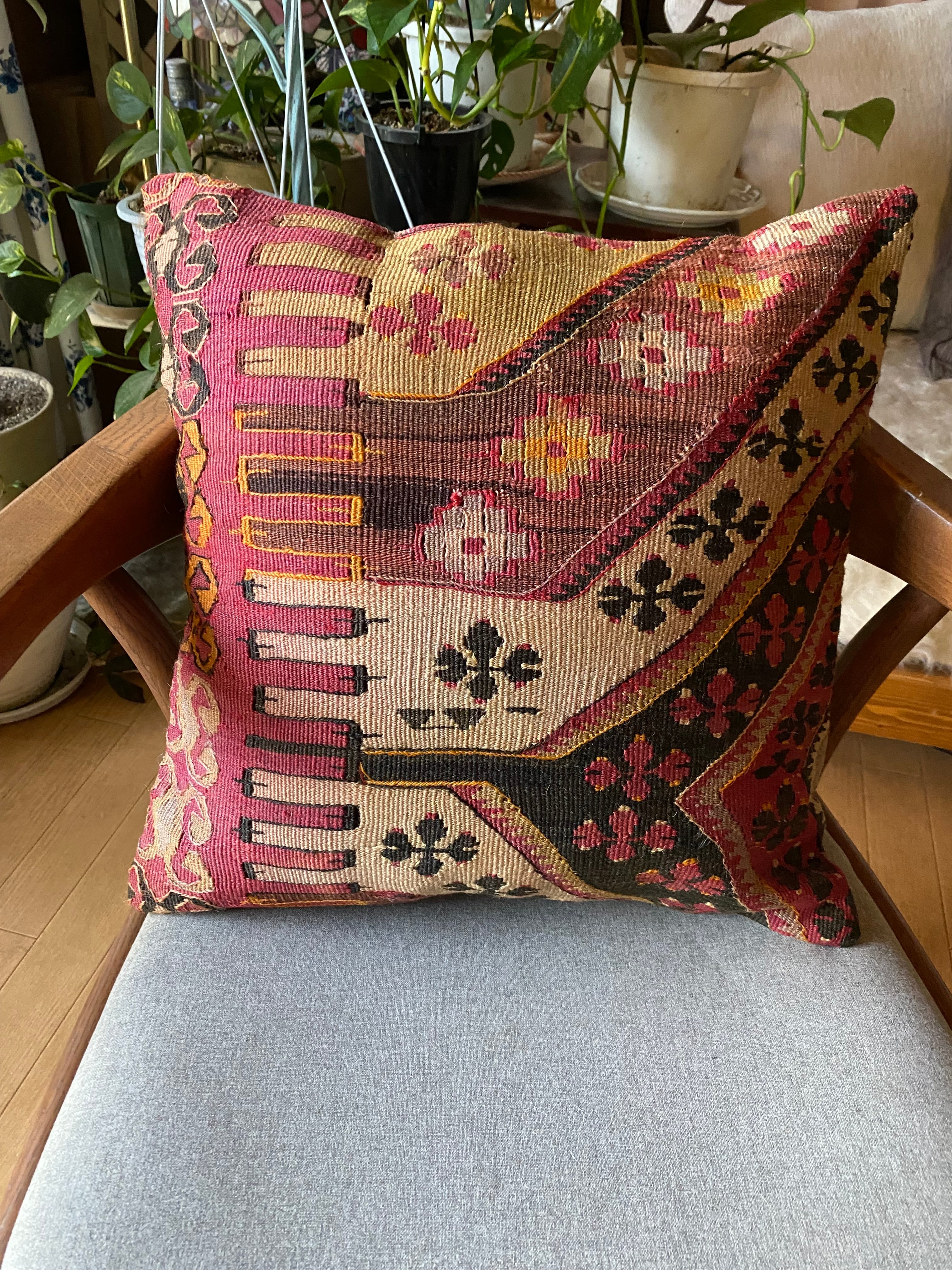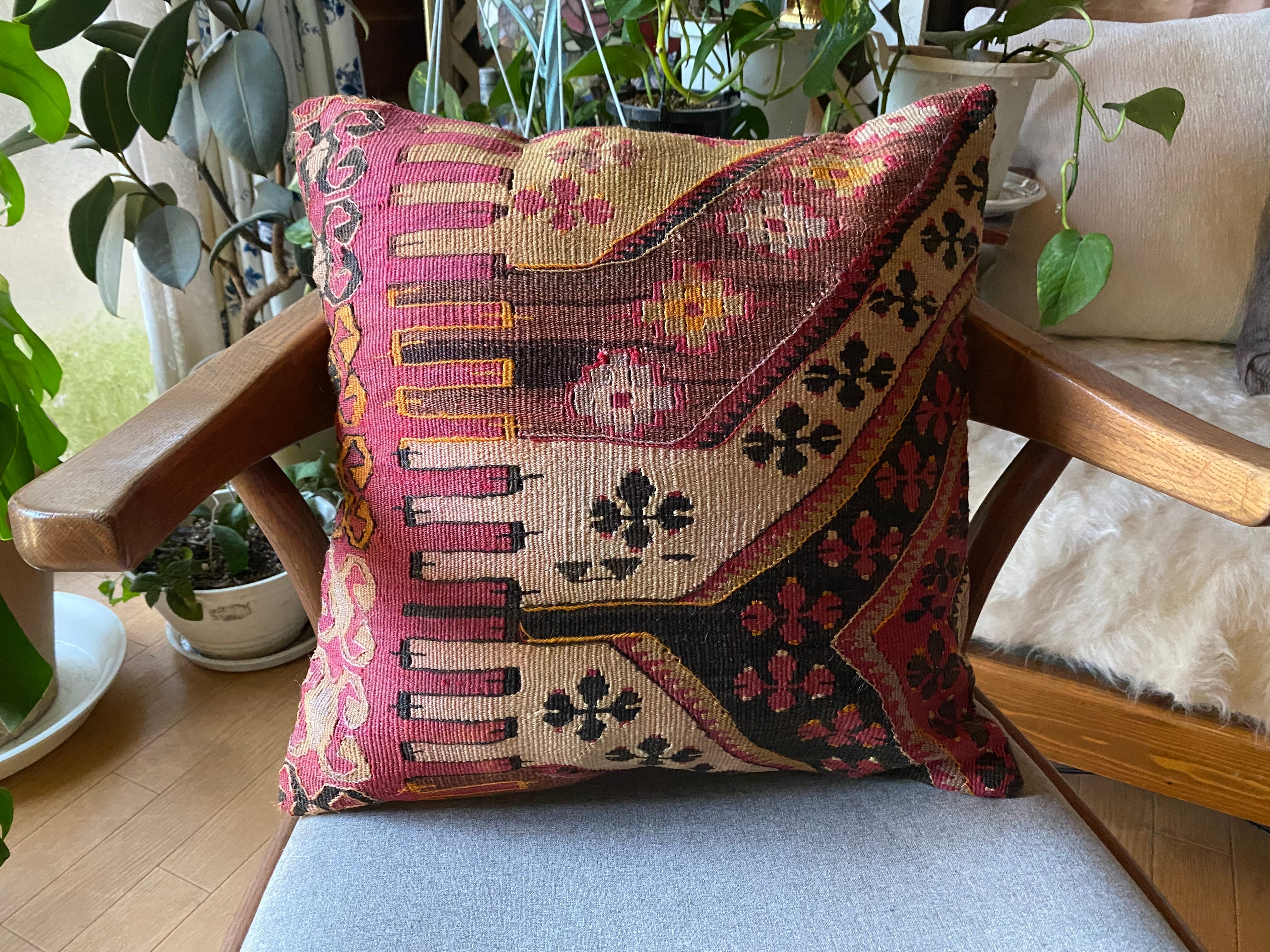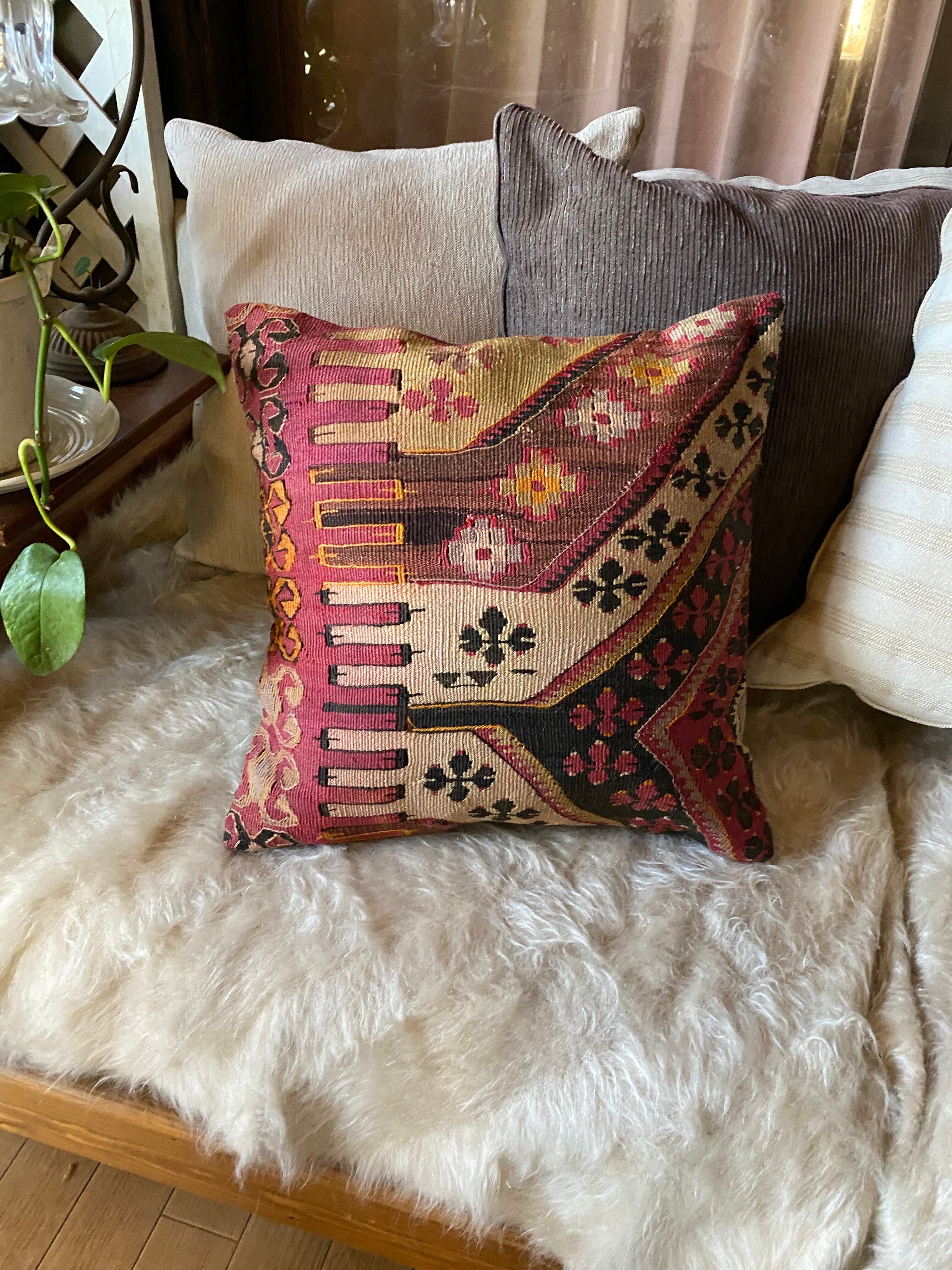 素晴らしい1ランク上の最高のトルコアンティークカイセリキリム使用クッションカバー!素晴らしい細かい織のオリジナルはかなり高級なキリム使用!キリムのある素敵な暮らしを始めませんか?