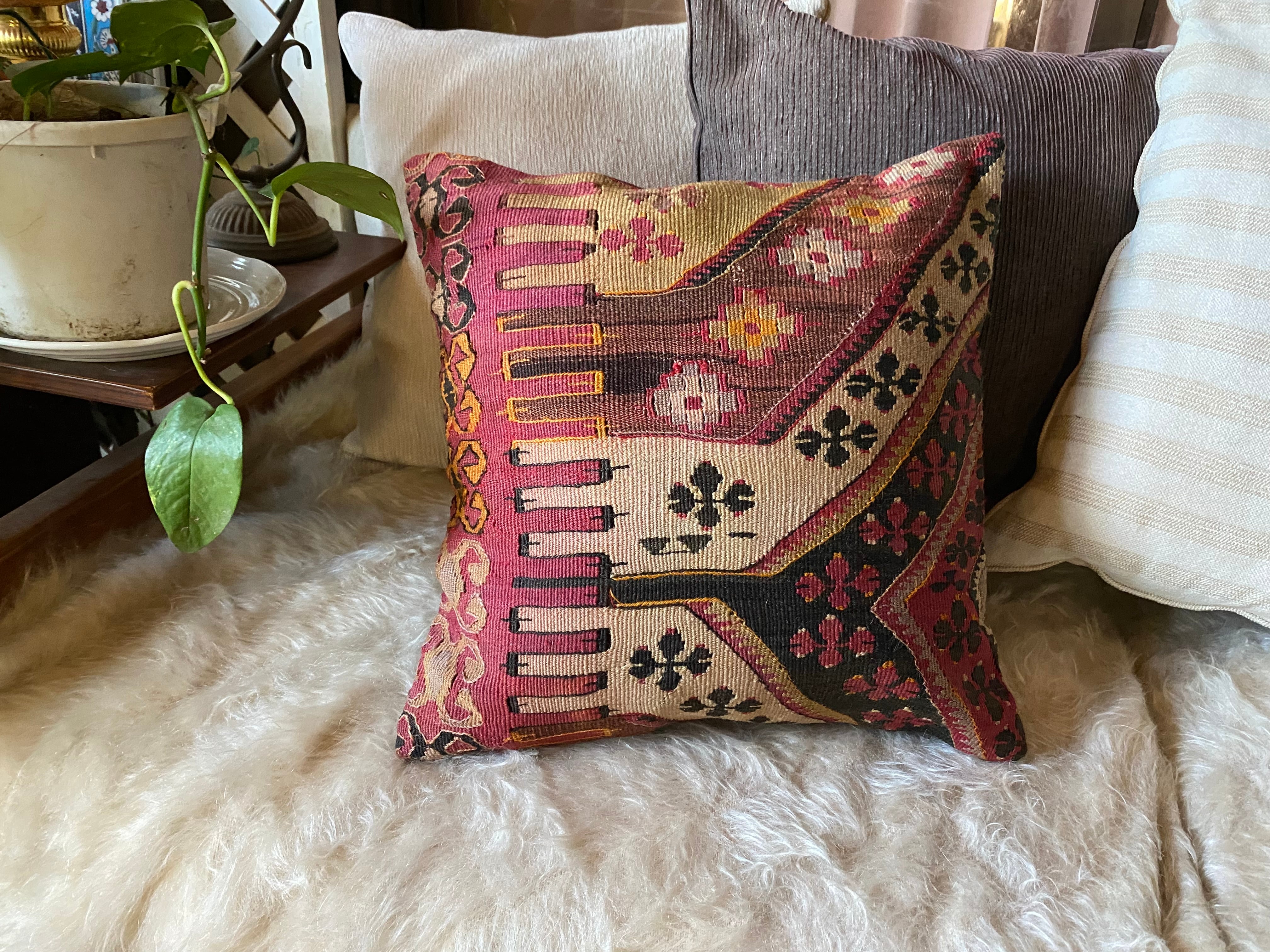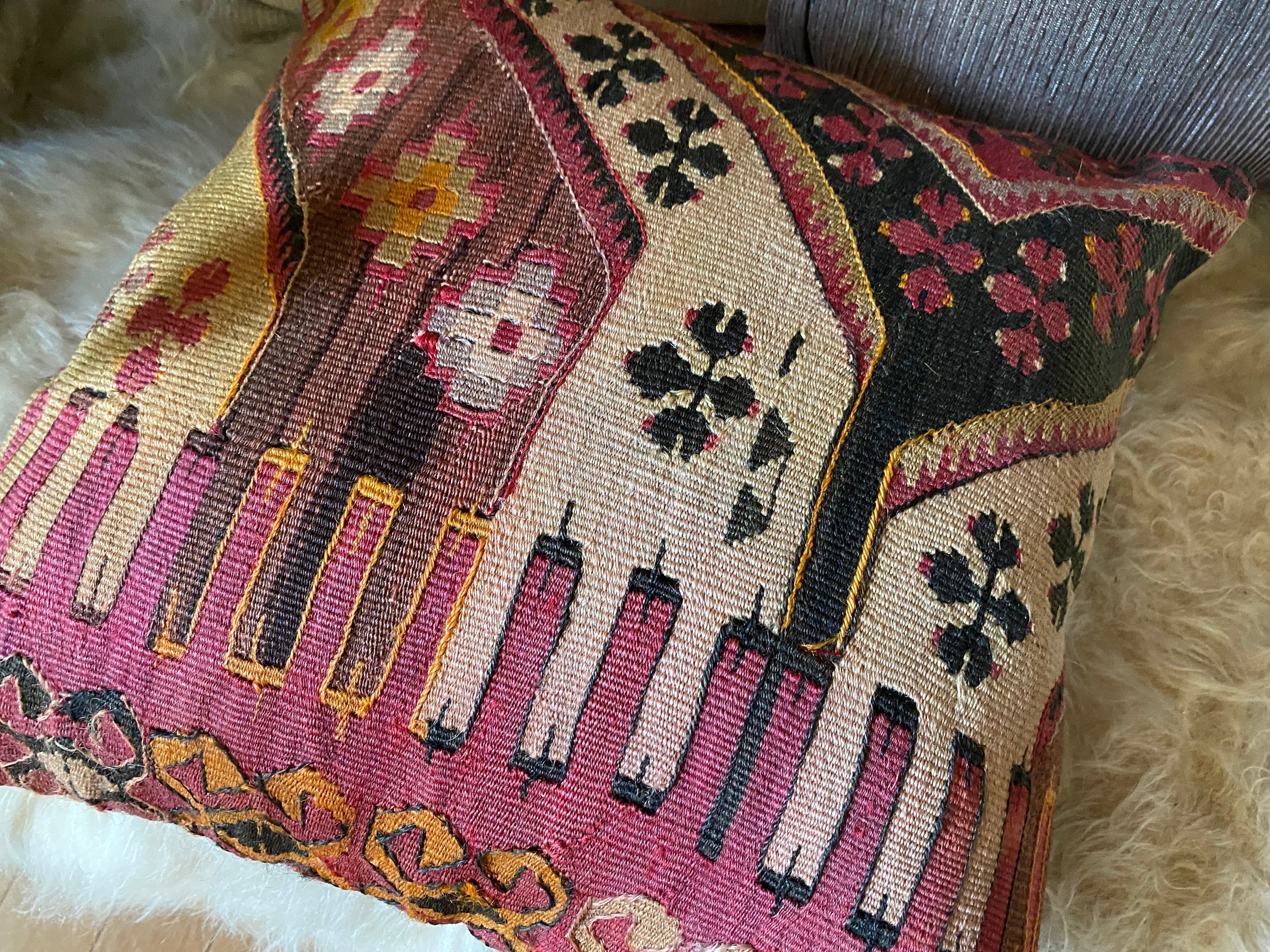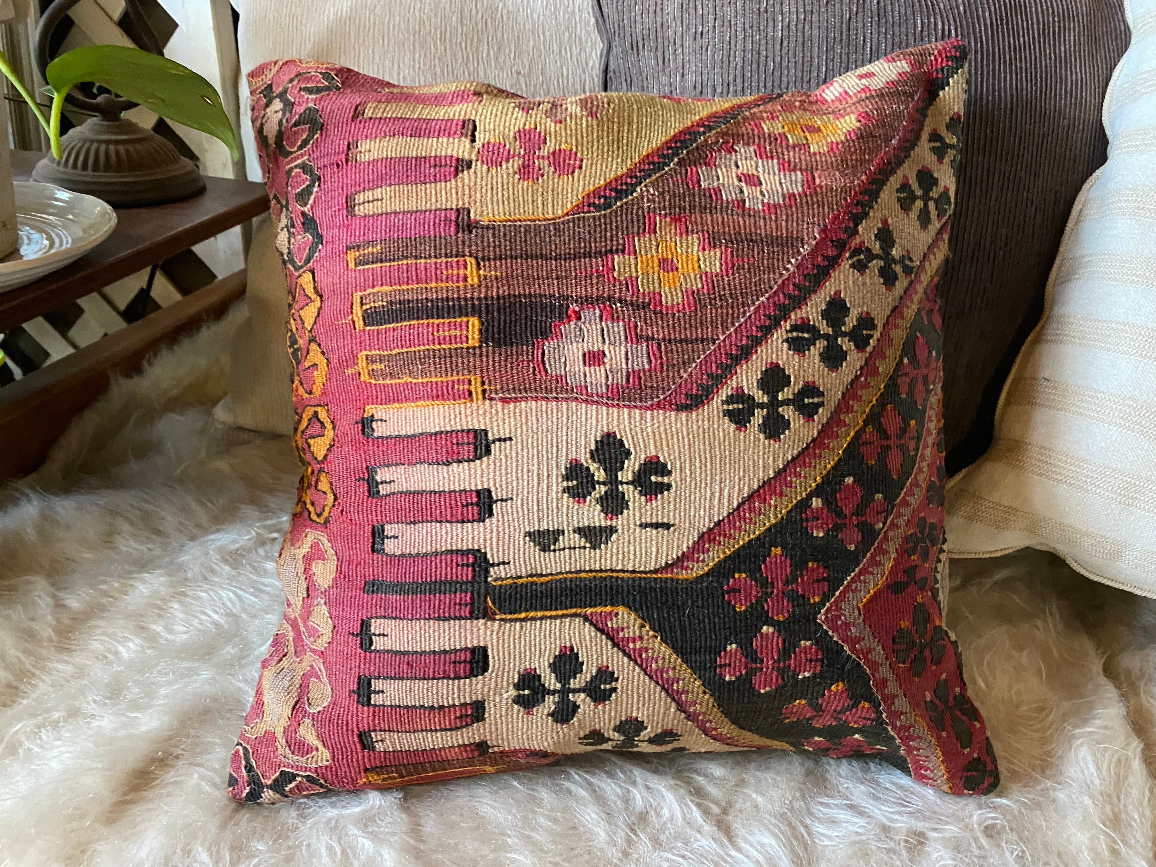 素晴らしい1ランク上の最高のトルコアンティークカイセリキリム使用クッションカバー!素晴らしい細かい織のオリジナルはかなり高級なキリム使用!キリムのある素敵な暮らしを始めませんか?