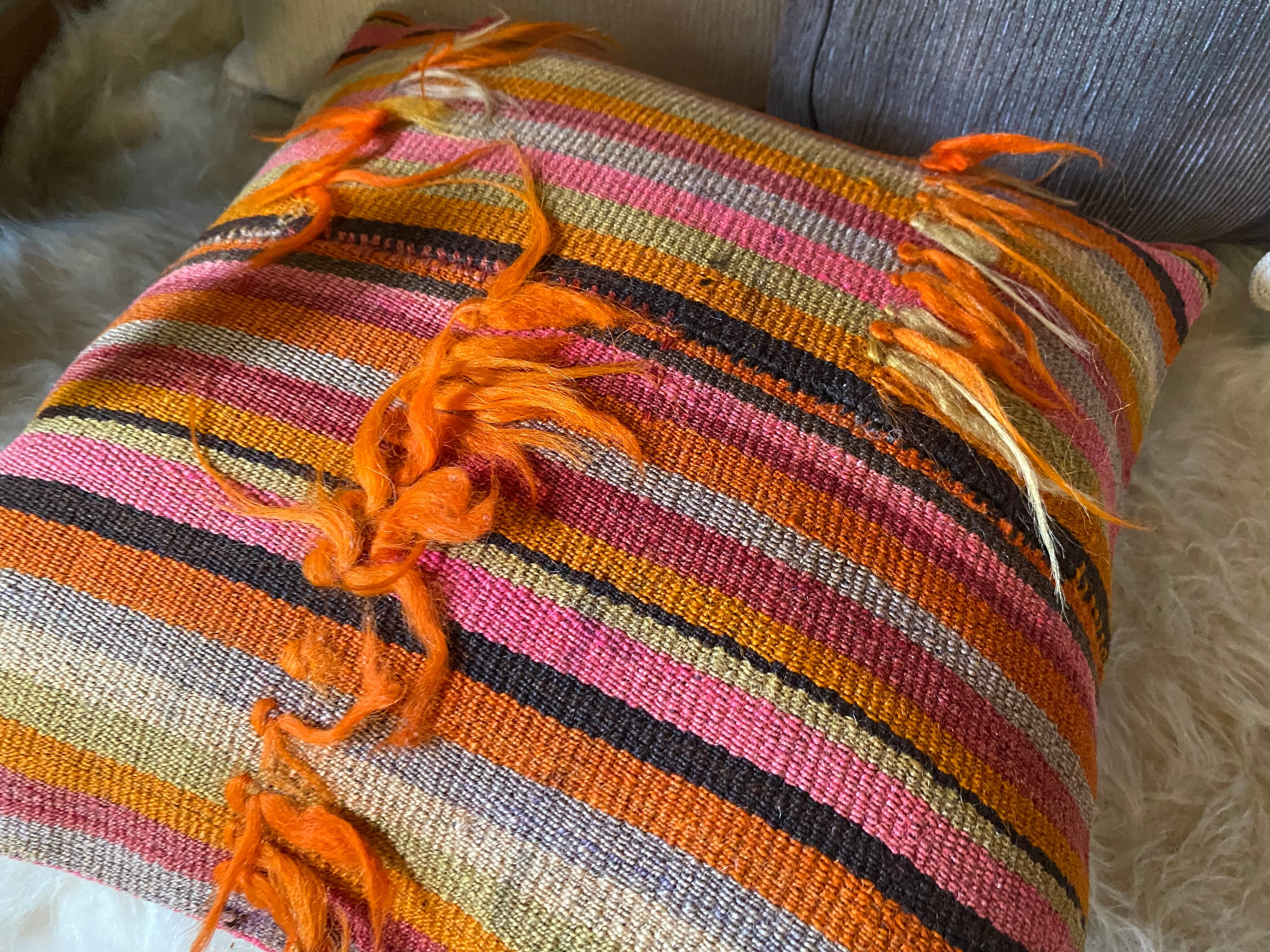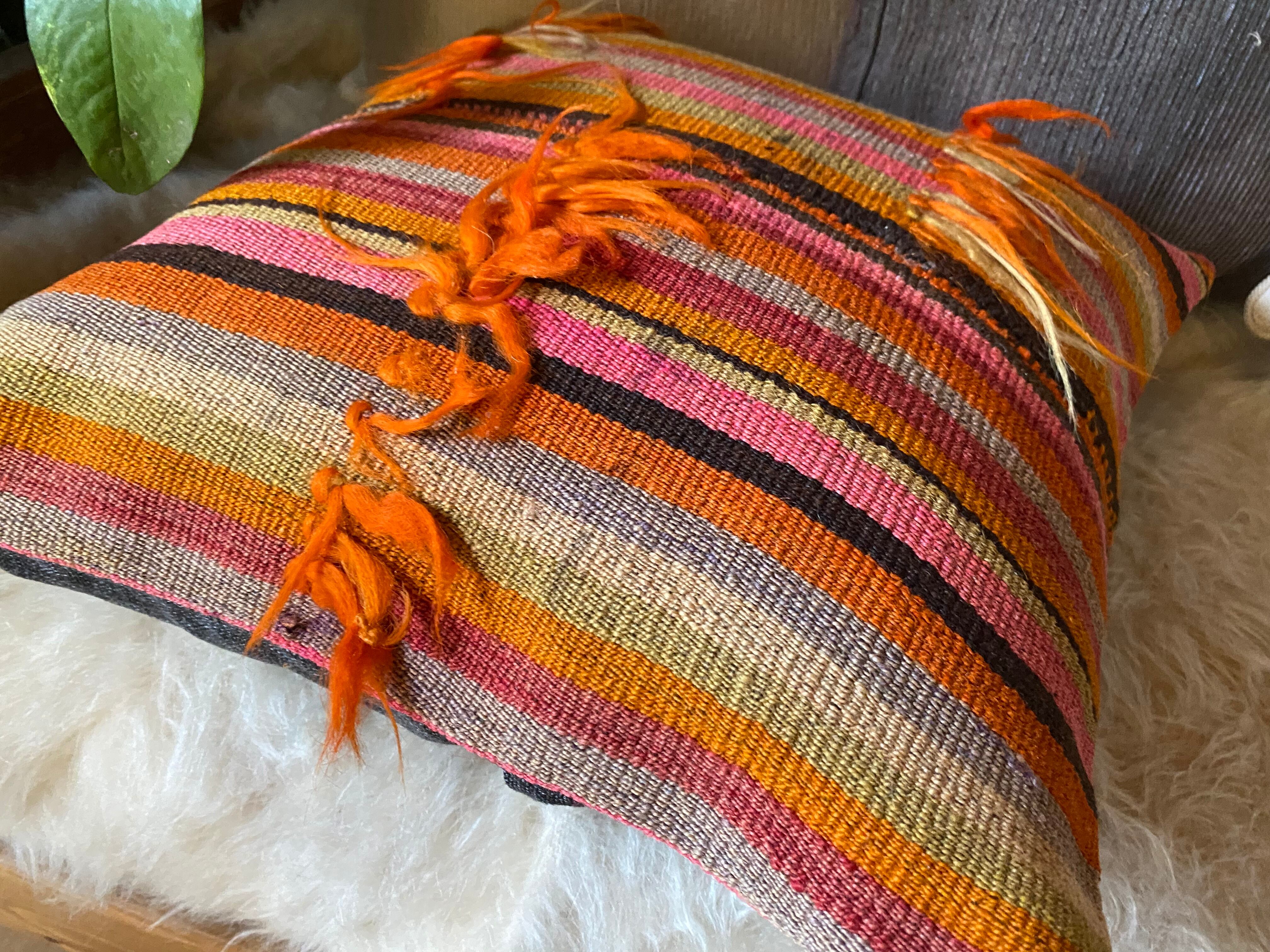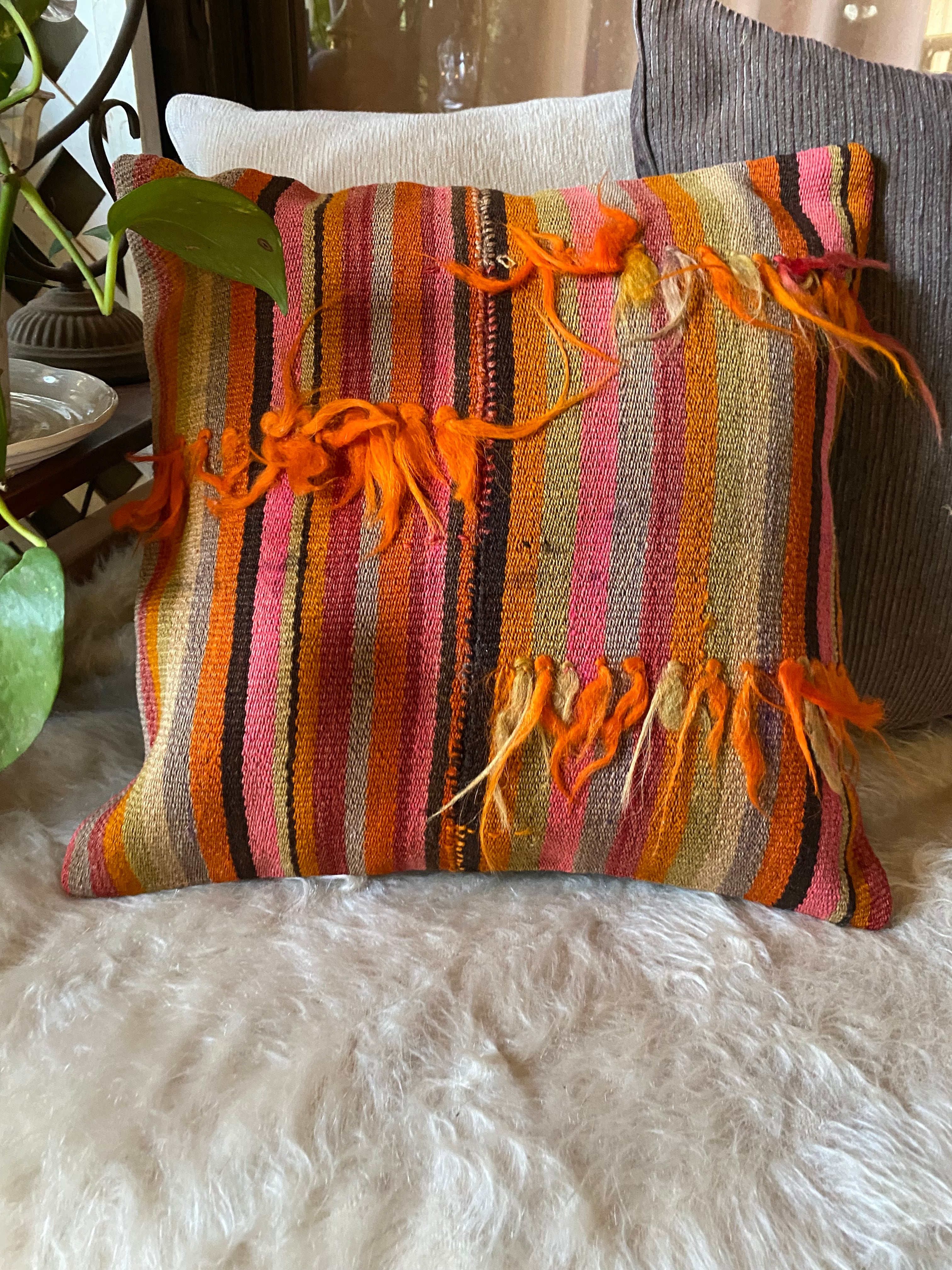 キリムのある素敵な暮らしを始めませんか?42×42クッションカバー一枚でお部屋が素敵に!房が可愛いトルコシヴァスキリムクッションカバー