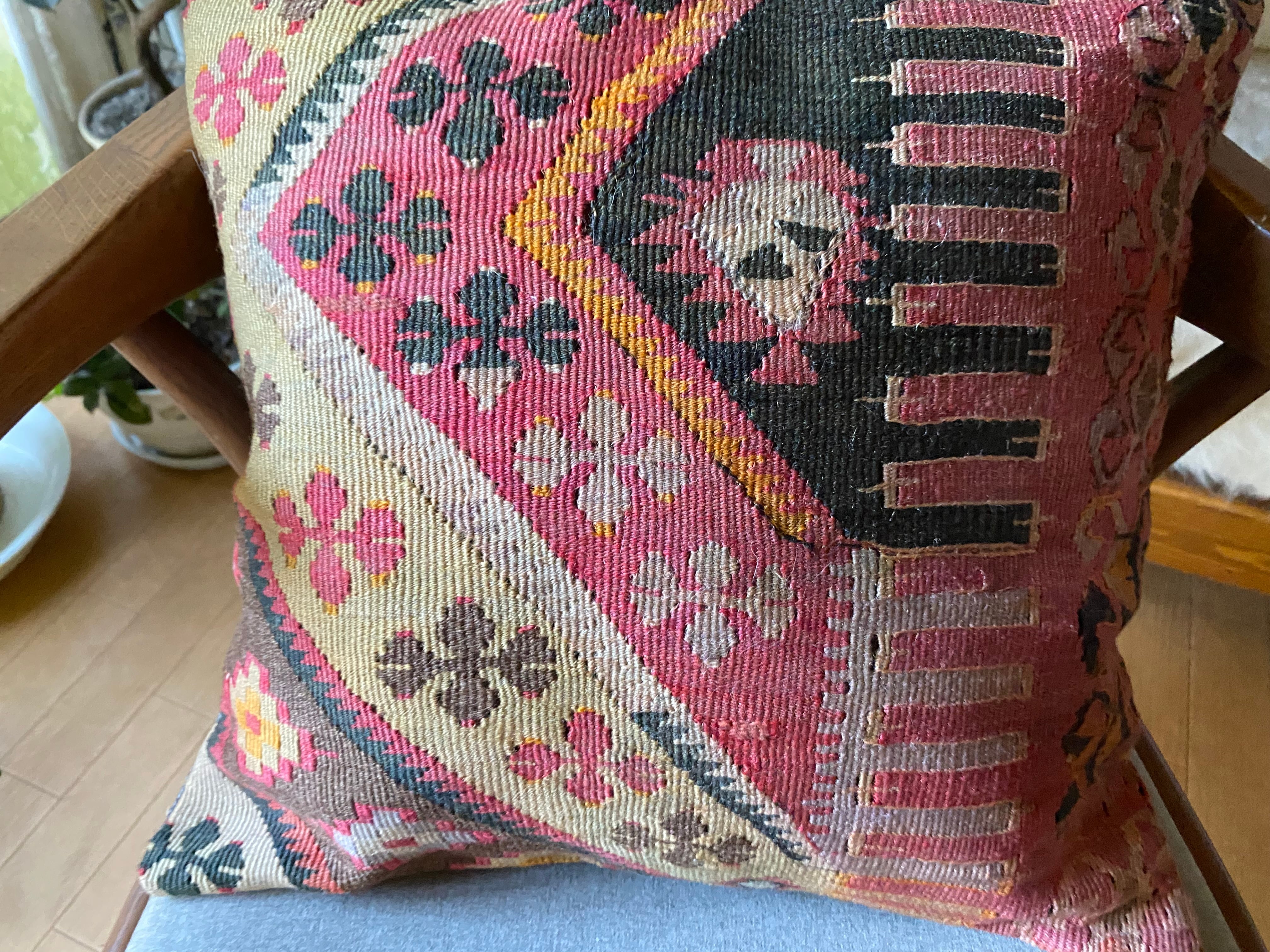 キリム初 めての方もこのクッションカバーを手に入れれば絶対にキリムがお好きになるは ず!まずはだまされたと思ってご入札ください!!クッション1枚から始まるキリ ムの世界です!!ぜひ現地よりいいものを手に入れてください!