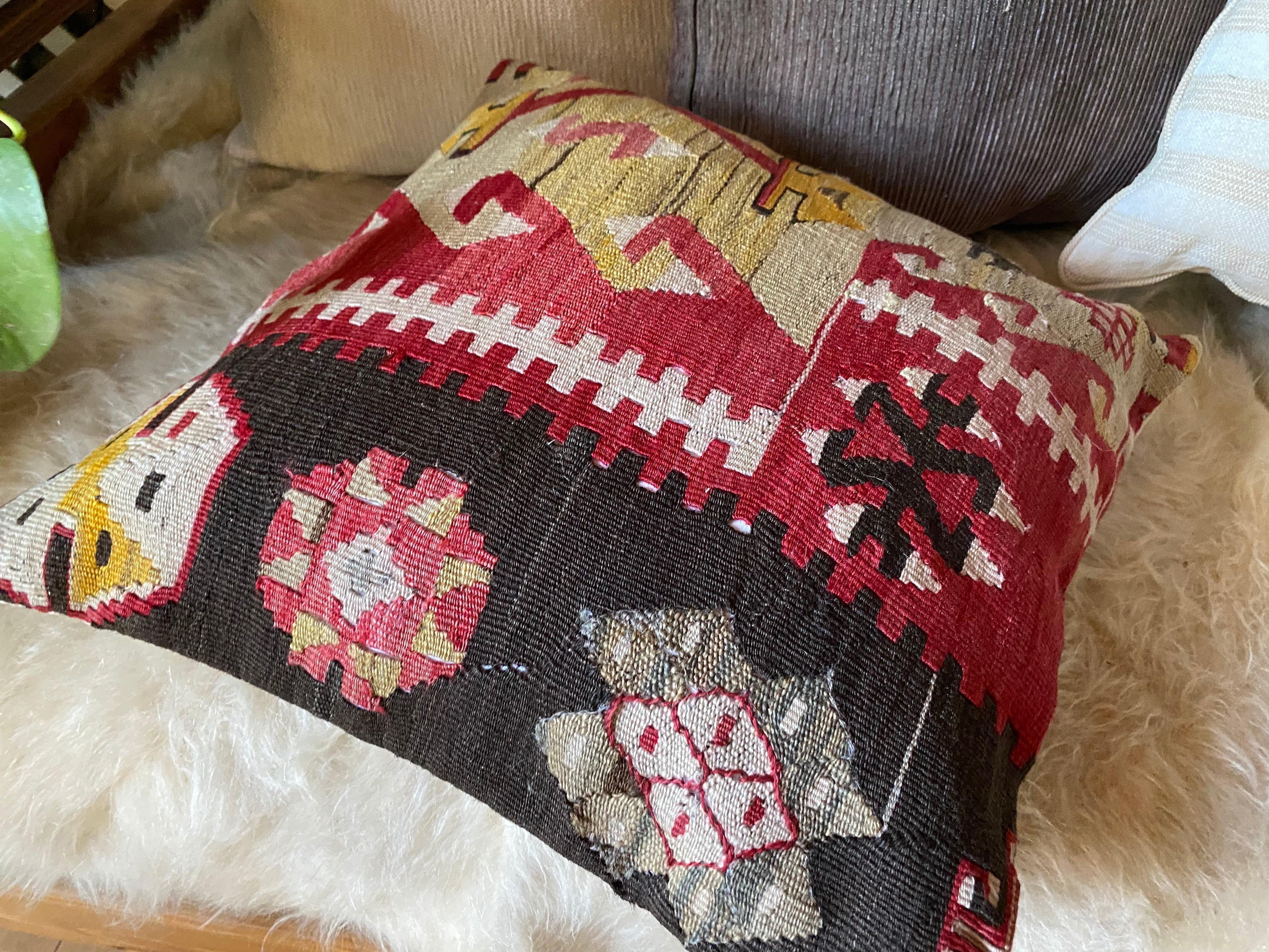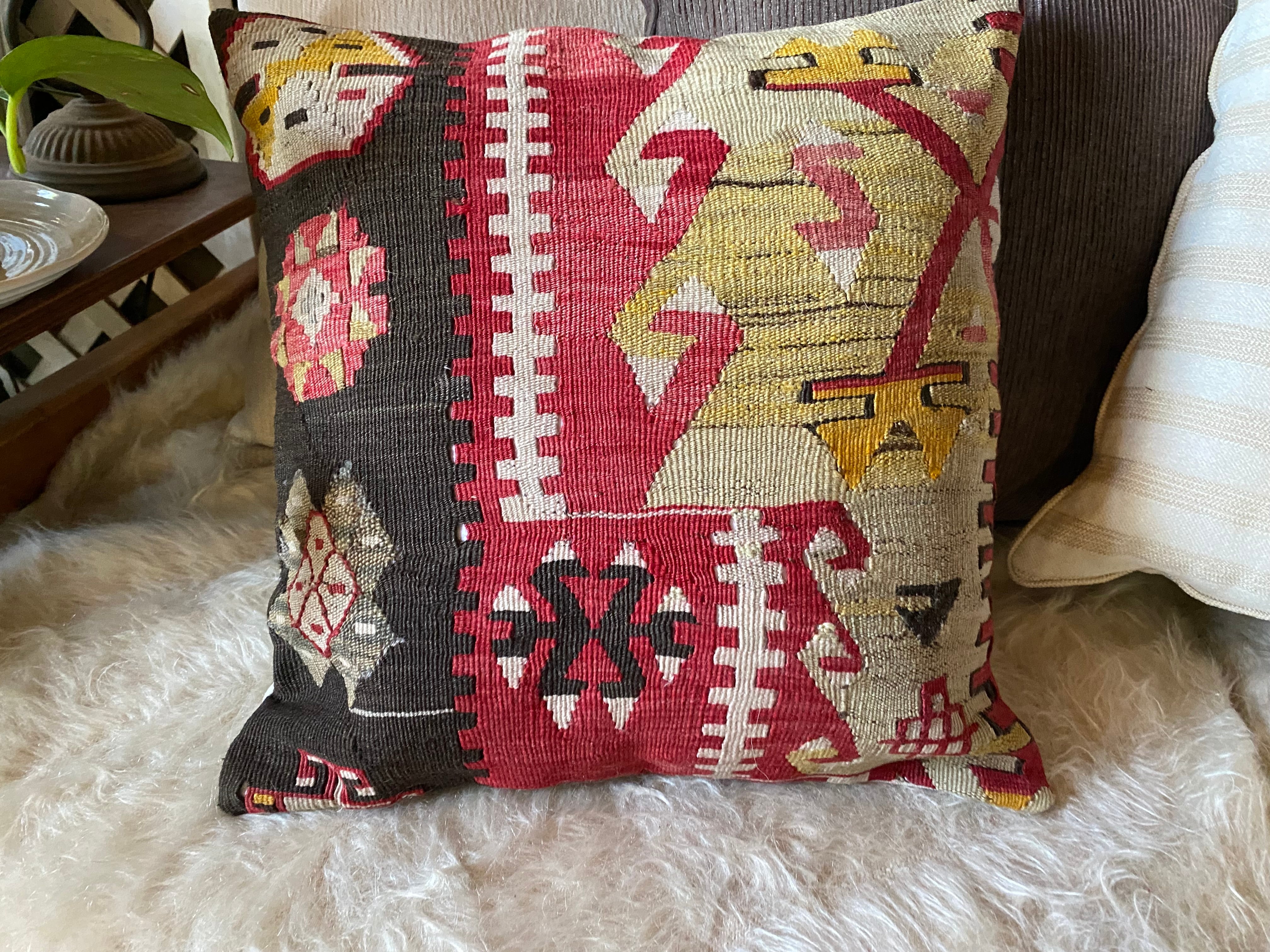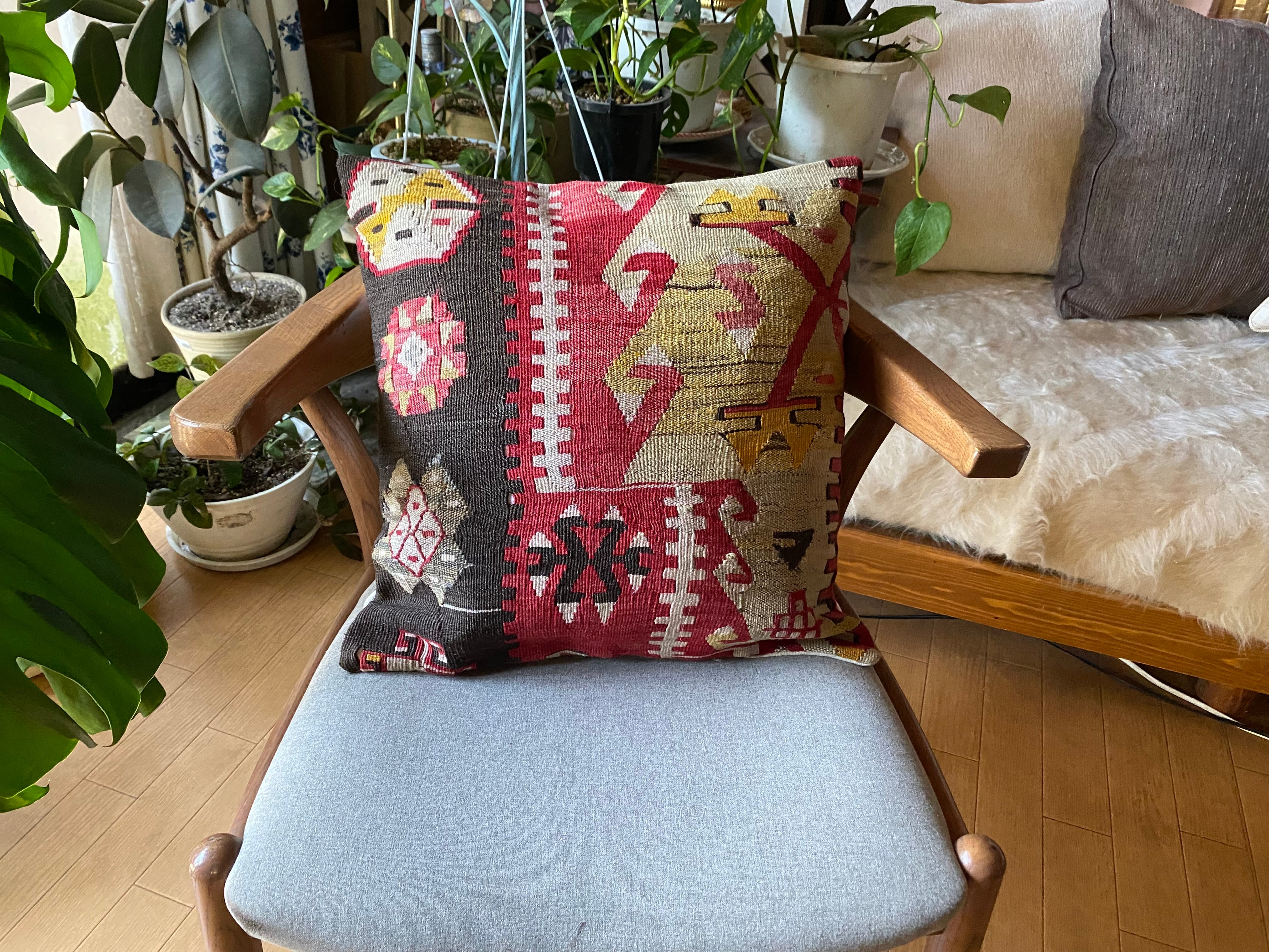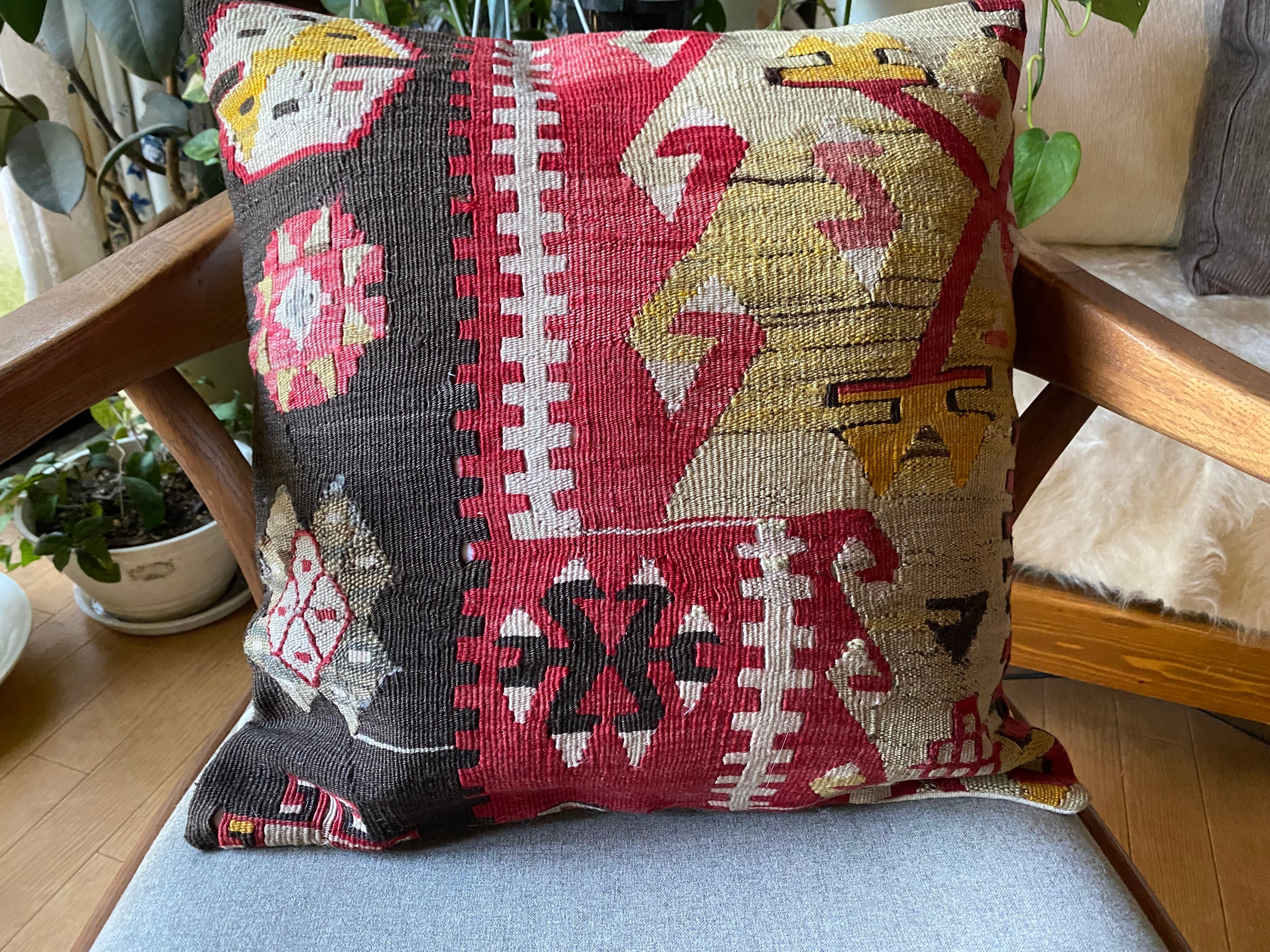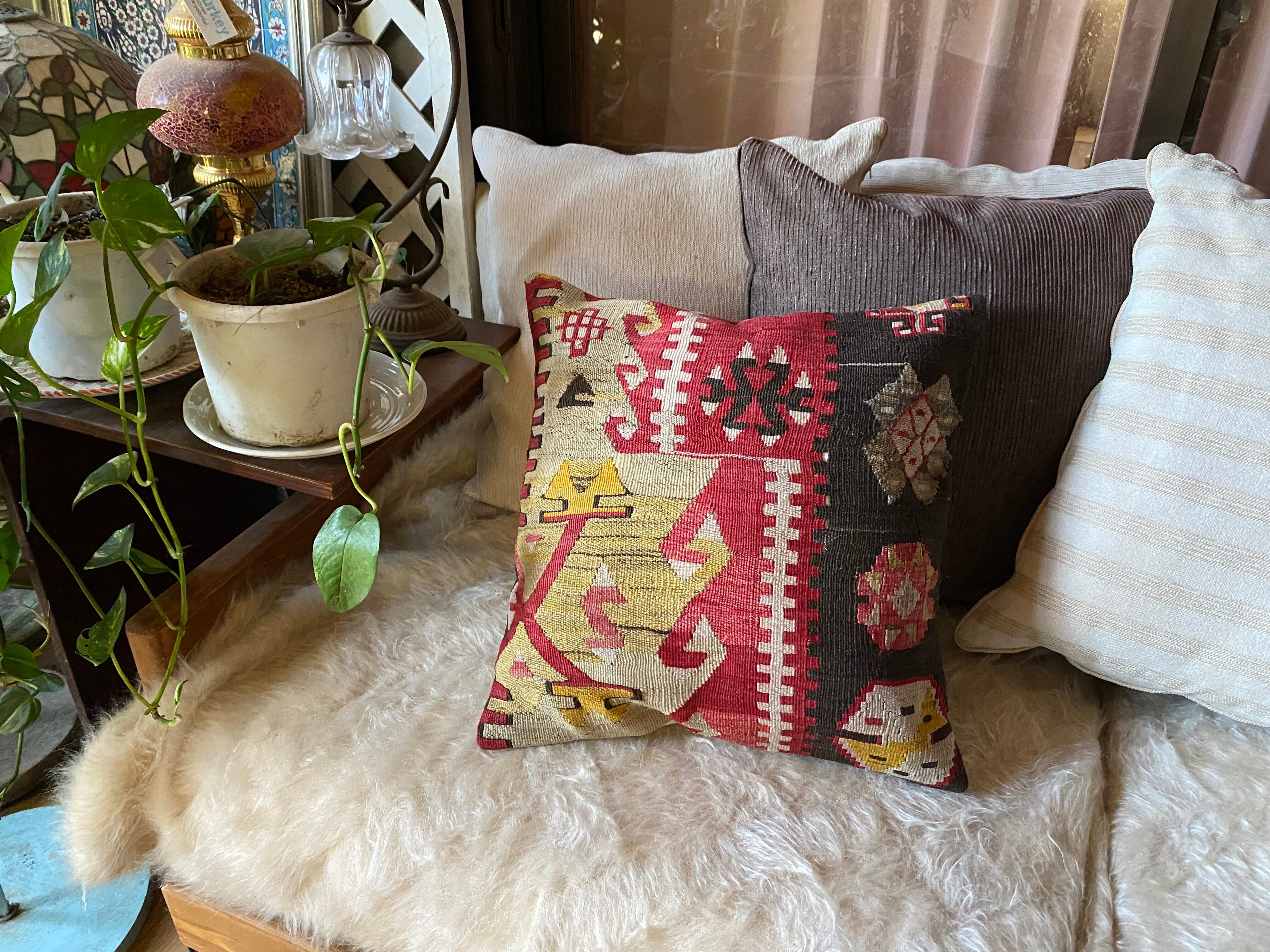 1ランク上の素晴らしい手織りトルコキリムクッションカバー!細い糸で織られた極上のカイセリキリム使用42×42数枚並べれば素晴らしいインテリアに!キリムのある素敵な暮らし始めませんか?