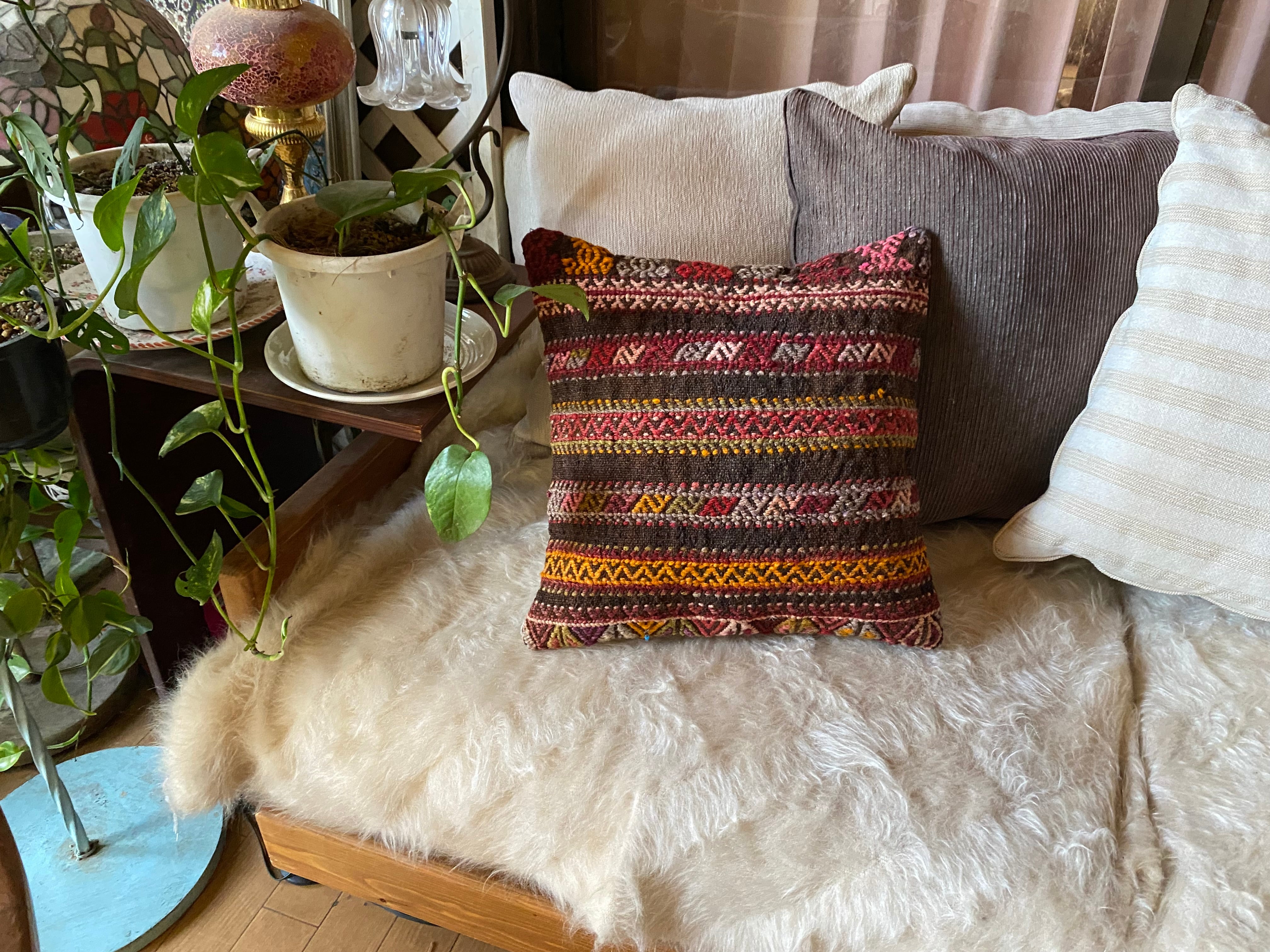 可愛いトルコジジム絨毯のクッションカバーは如何ですか?気分により気軽にインテリアの模様替えができるキリムクッションカバー!