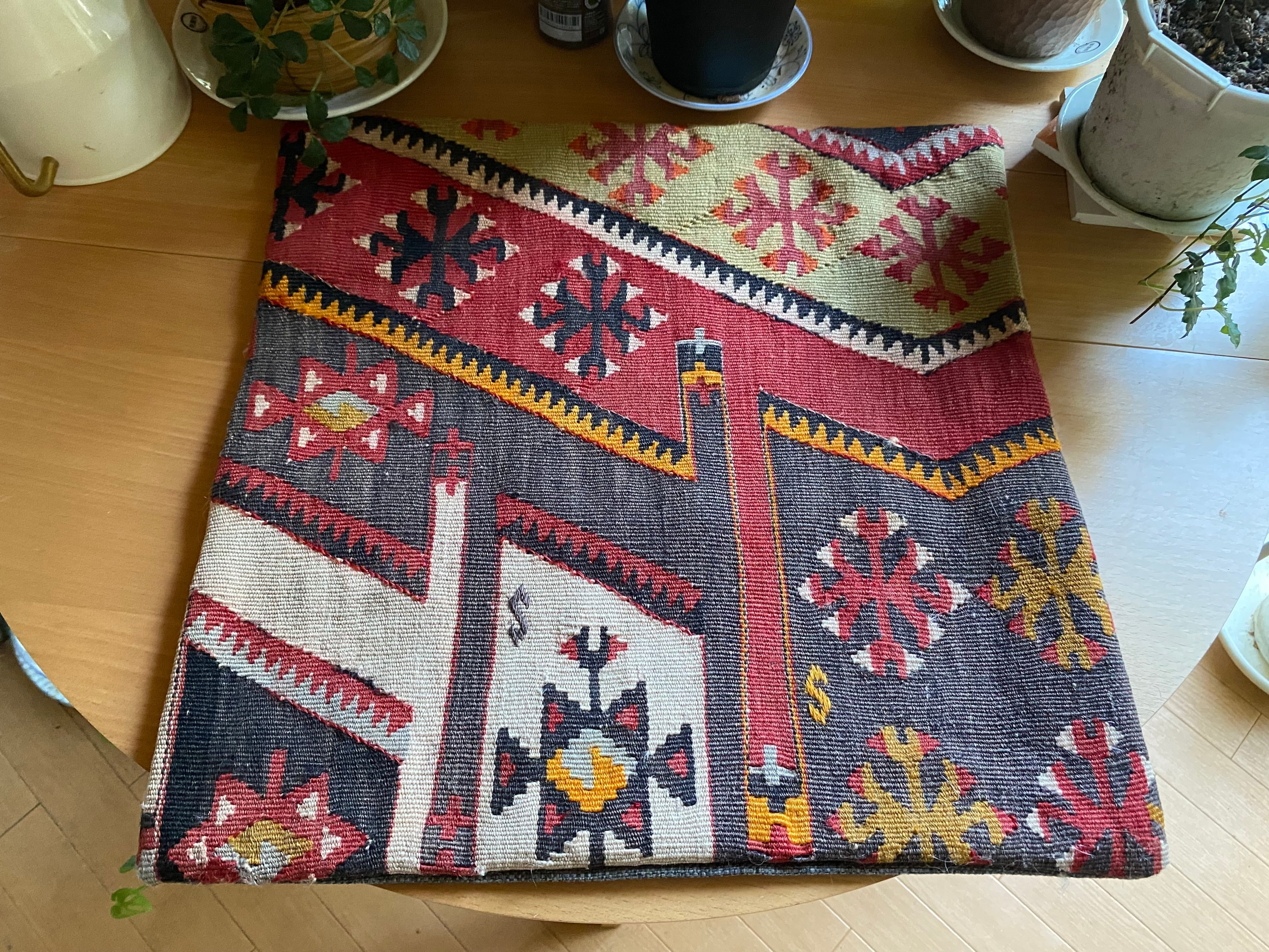 キリム初 めての方もこのクッションカバーを手に入れれば絶対にキリムがお好きになるは ず!まずはだまされたと思ってご入札ください!!クッション1枚から始まるキリ ムの世界です!!ぜひ現地よりいいものを手に入れてください!