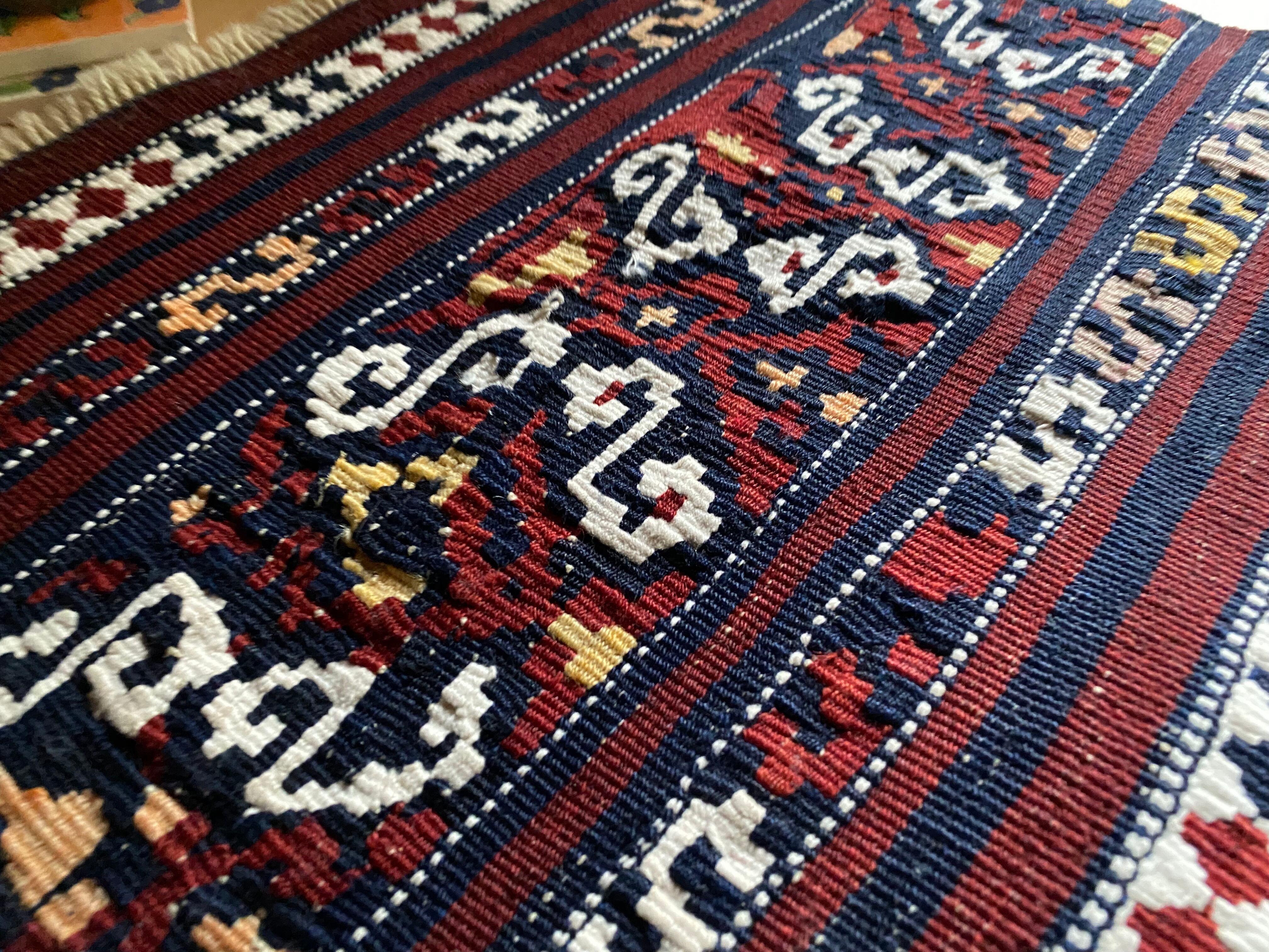大変貴重で有名なトルコのキリムの産地マラティヤシャワック族のキリム、クッションカバーにする前のフラグメント在庫1点のみ